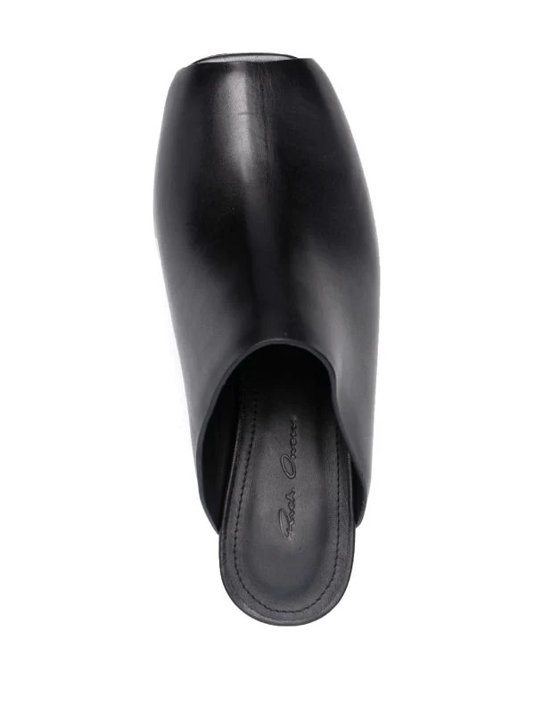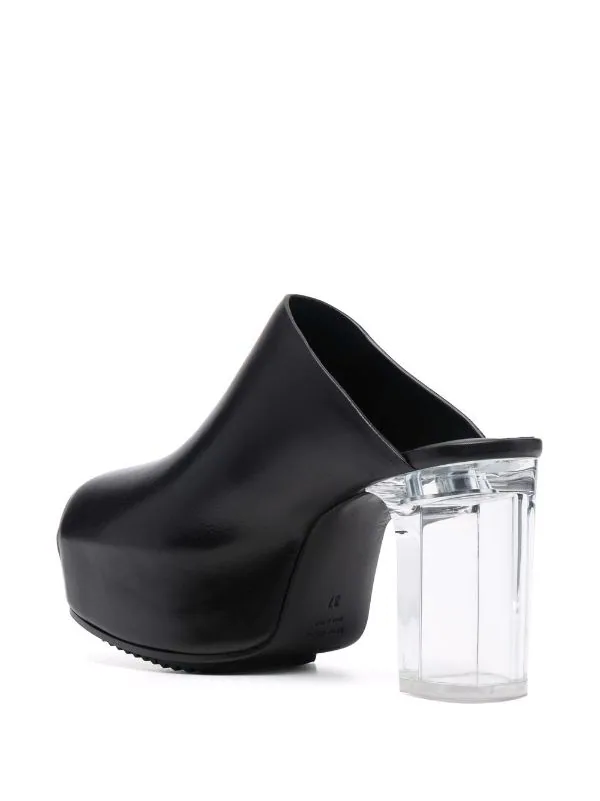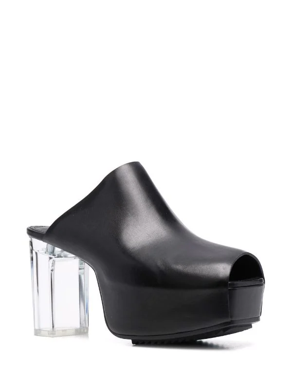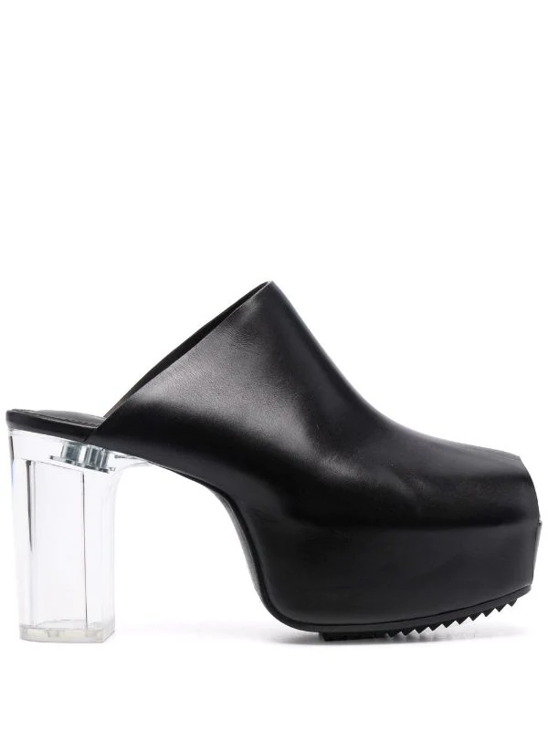 Talon épais transparent, design à enfiler, bout carré, semelle intérieure à logo. Matière : cuir.