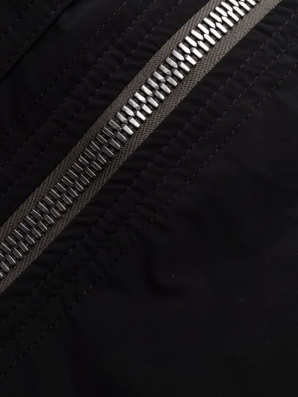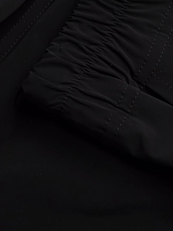 Lien de resserrage à la taille, poches latérales à rabat, détails zippés, poches arrière à rabat. Couleur : noir.