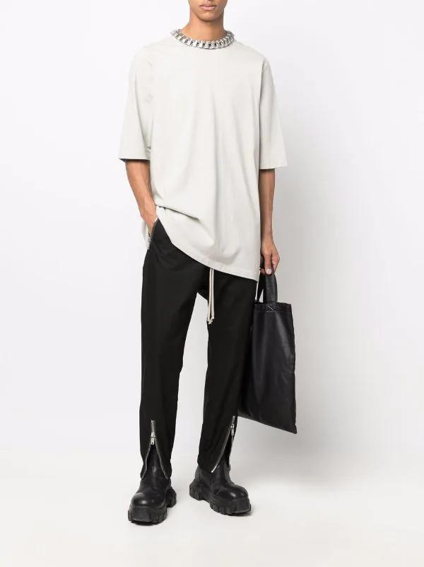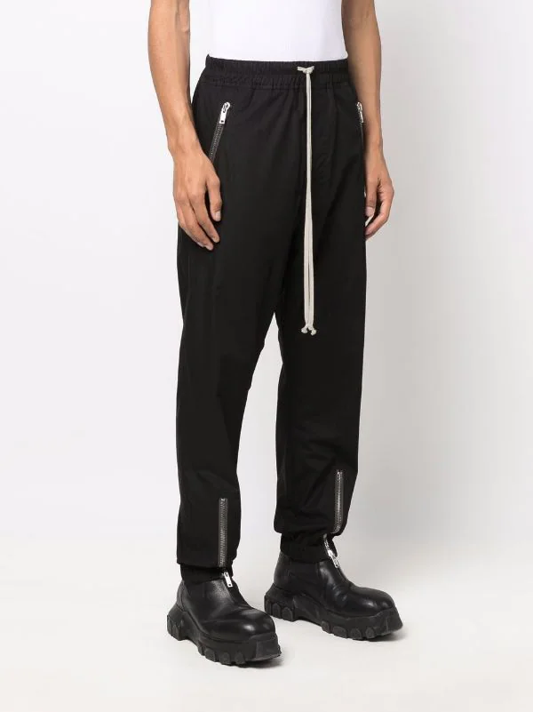 Ceinture élastique, design à enfiler, coupe slim, deux poches latérales fendues, poches arrière passepoilées, chevilles zippées.