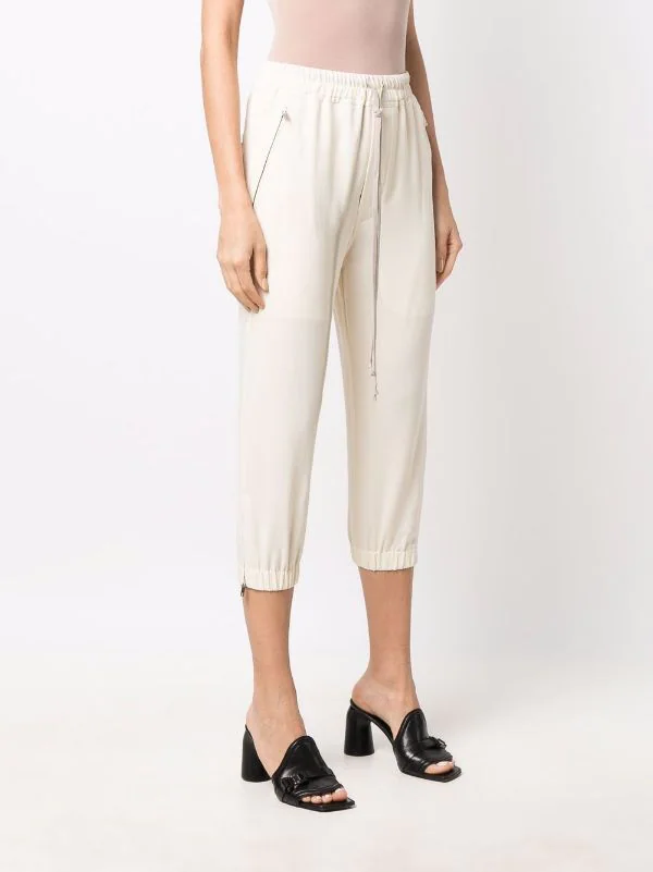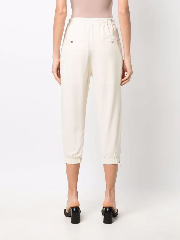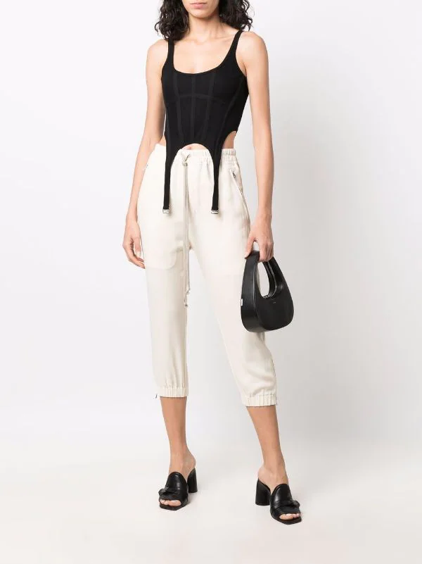 Ceinture élastique, lien de resserrage, poches latérales fendues, coupe courte.