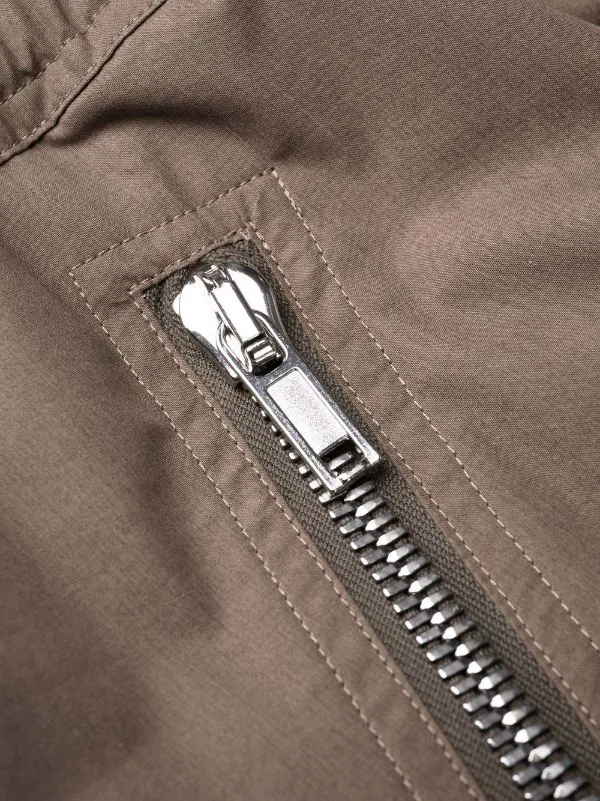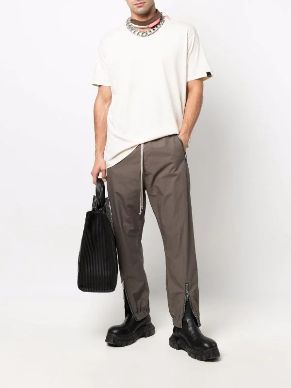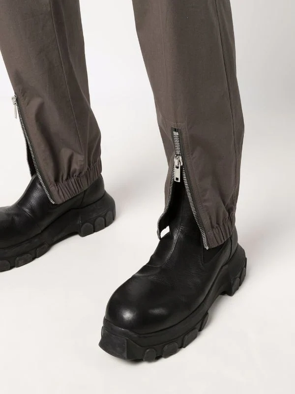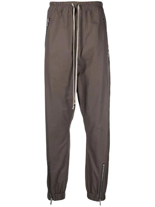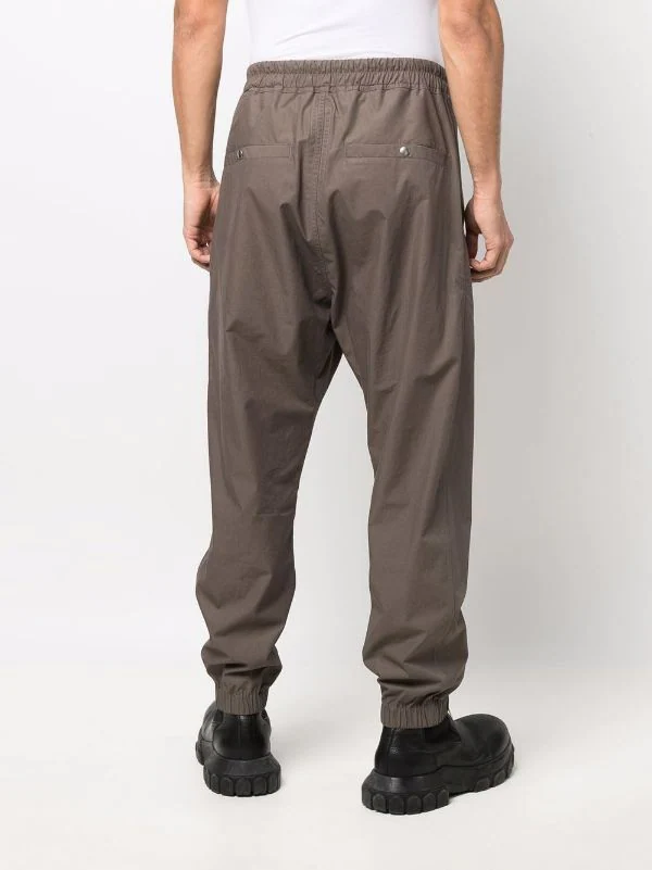 Taille haute, taille élastique à lien de resserrage, deux poches latérales zippées, chevilles zippées, poignets élastiqués, poches arrière passepoilées. Matière : coton biologique.