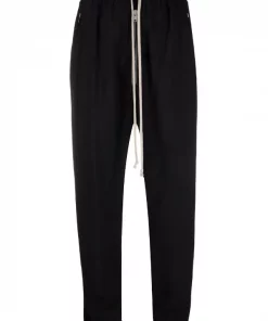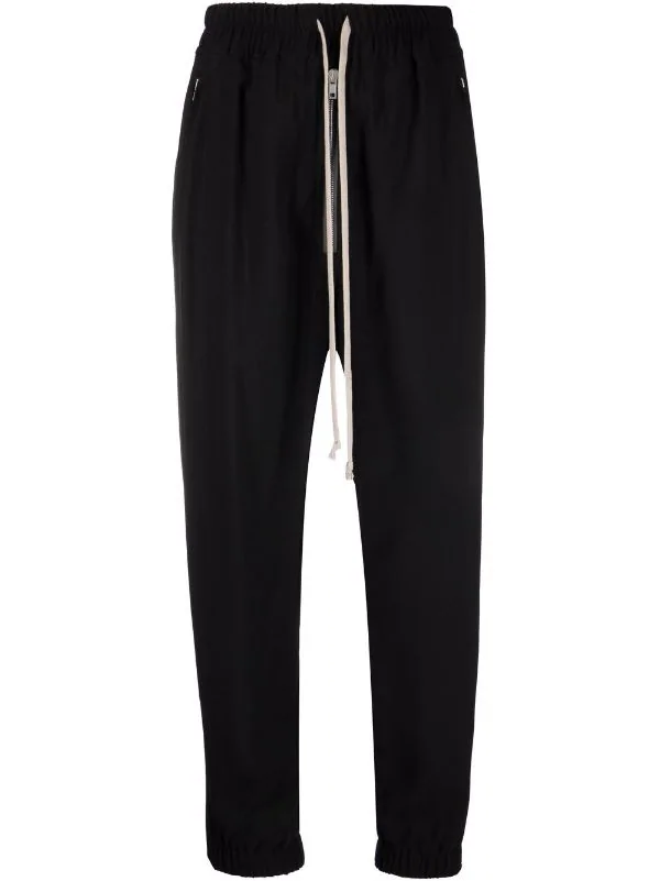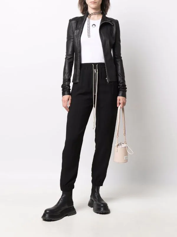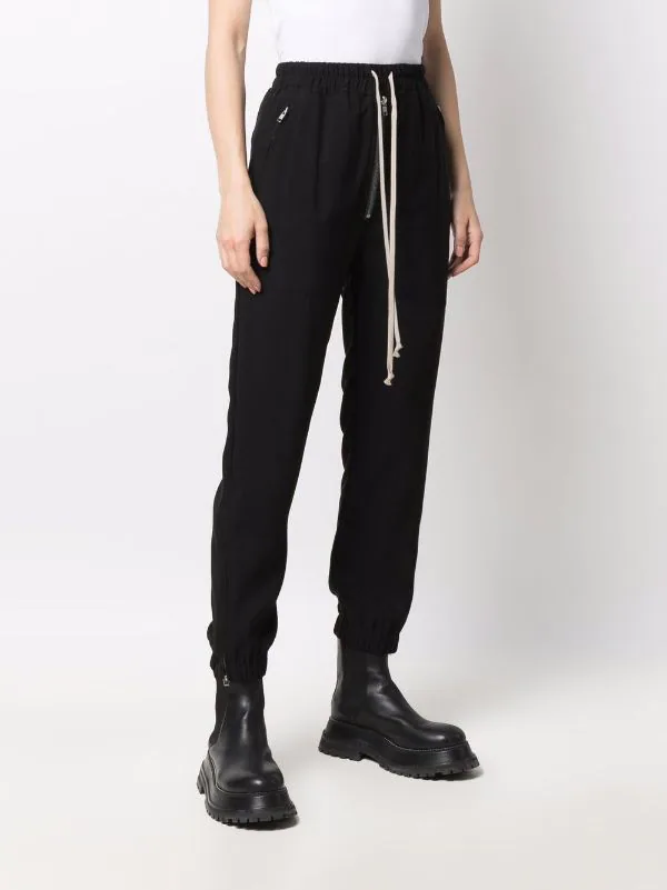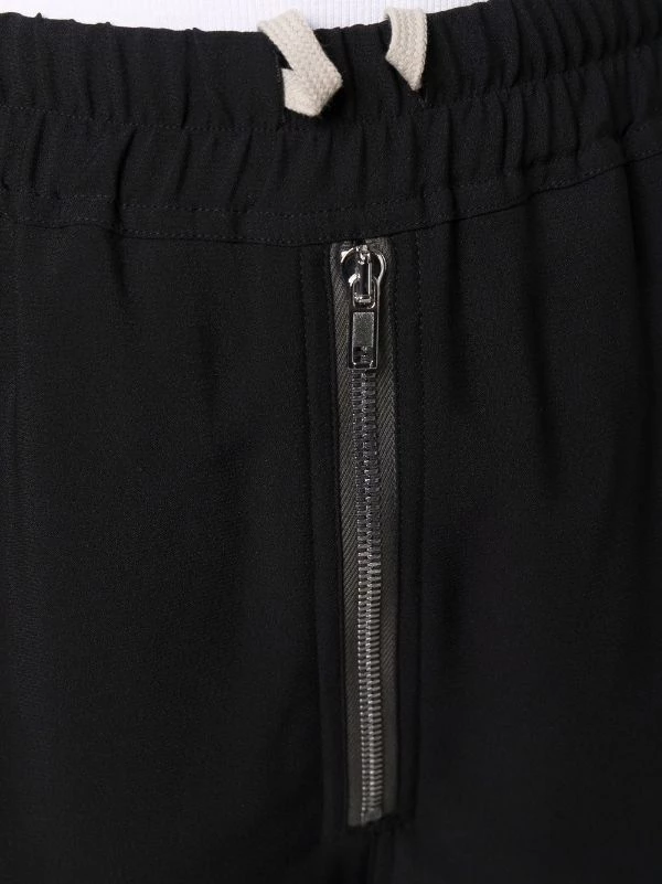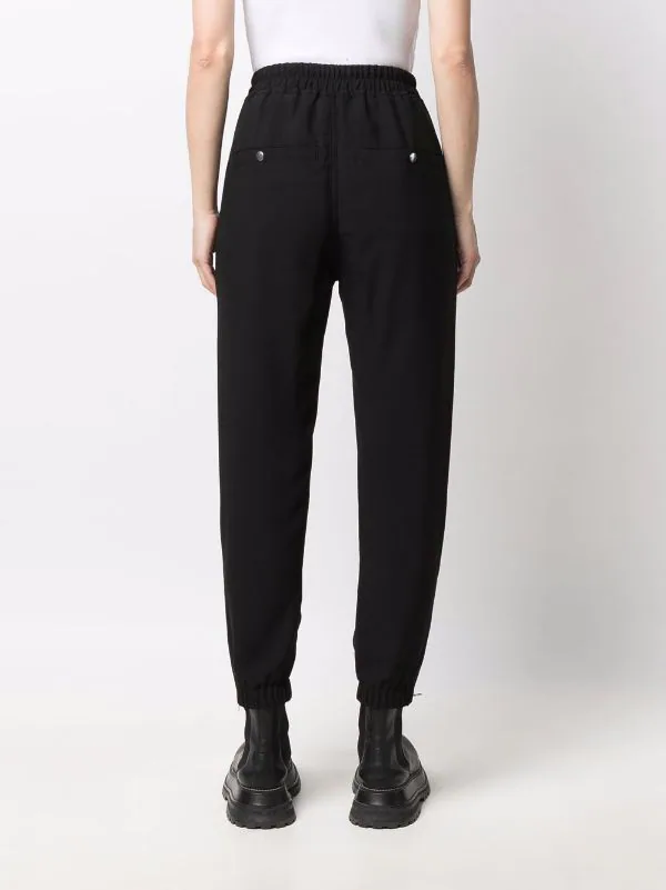 Coupe skinny, détail de zip, taille élastique à lien de resserrage, deux poches boutonnées. Couleur : noir.