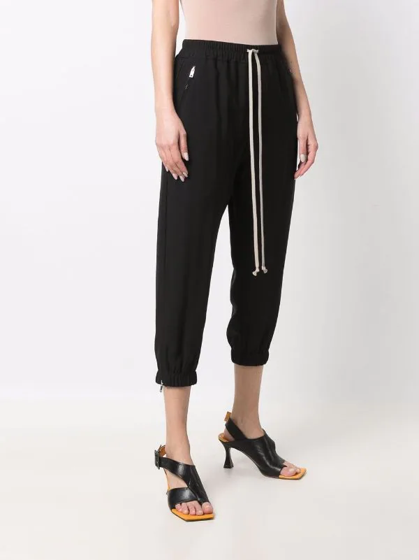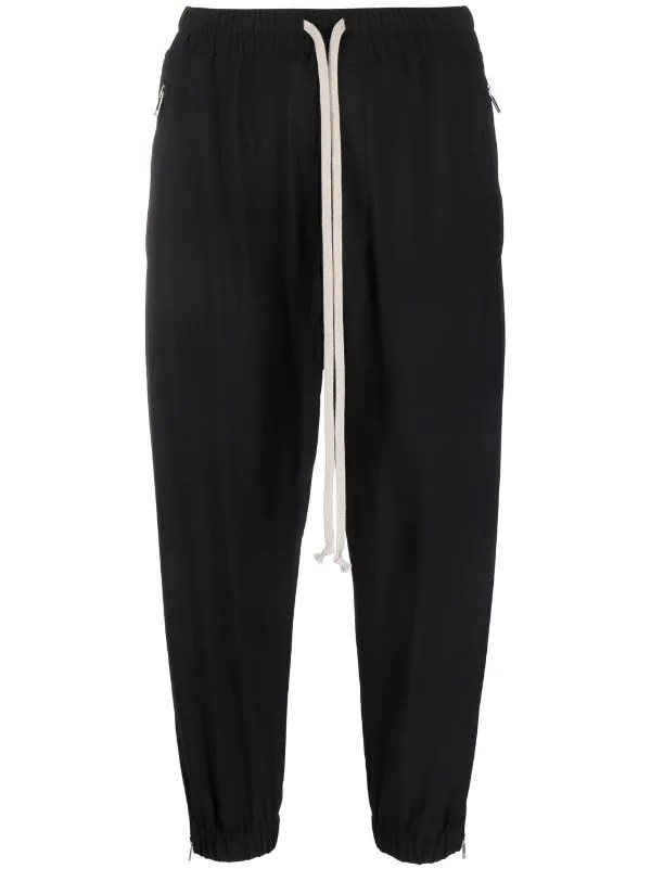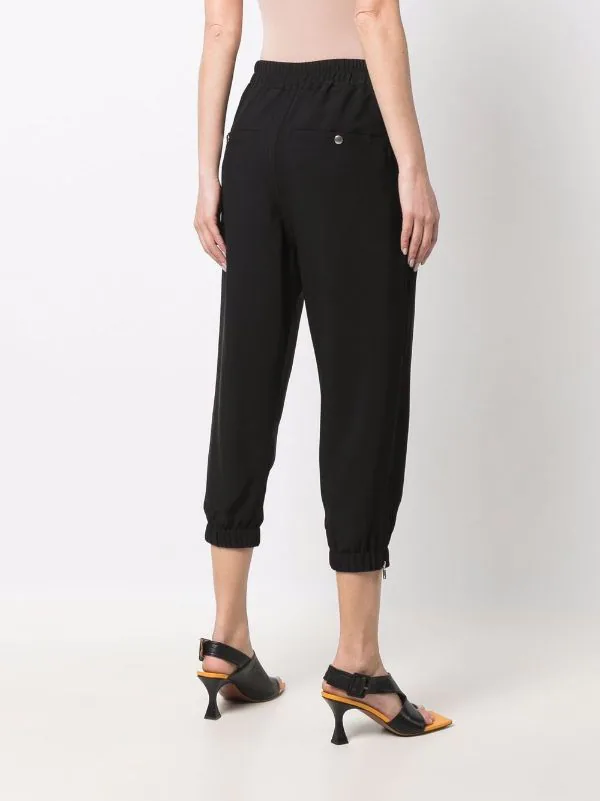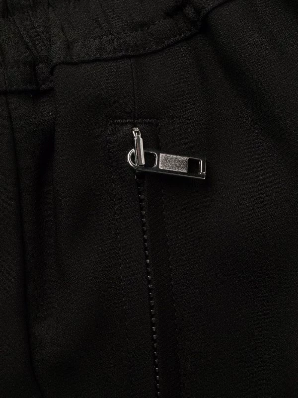 Taille à lien de resserrage, deux poches latérales zippées, poches arrière passepoilées, coupe fuselée, coupe courte. Couleur : noir.