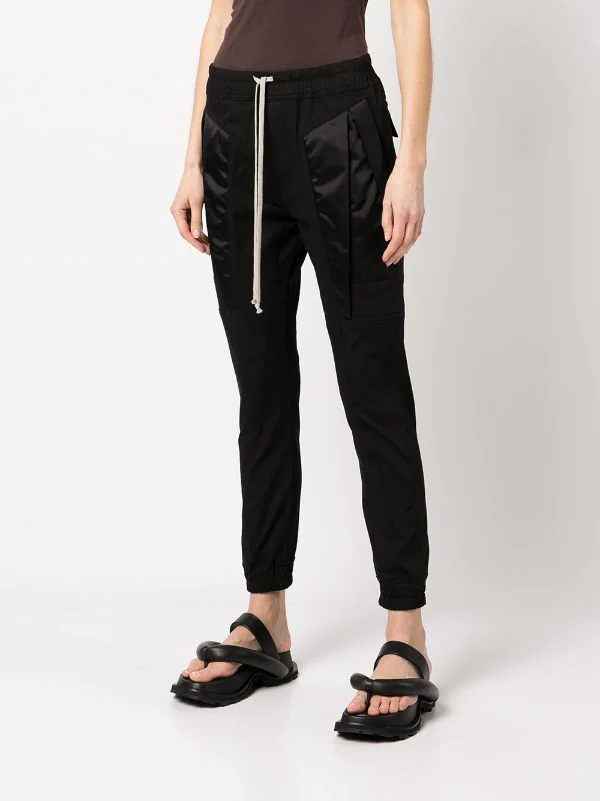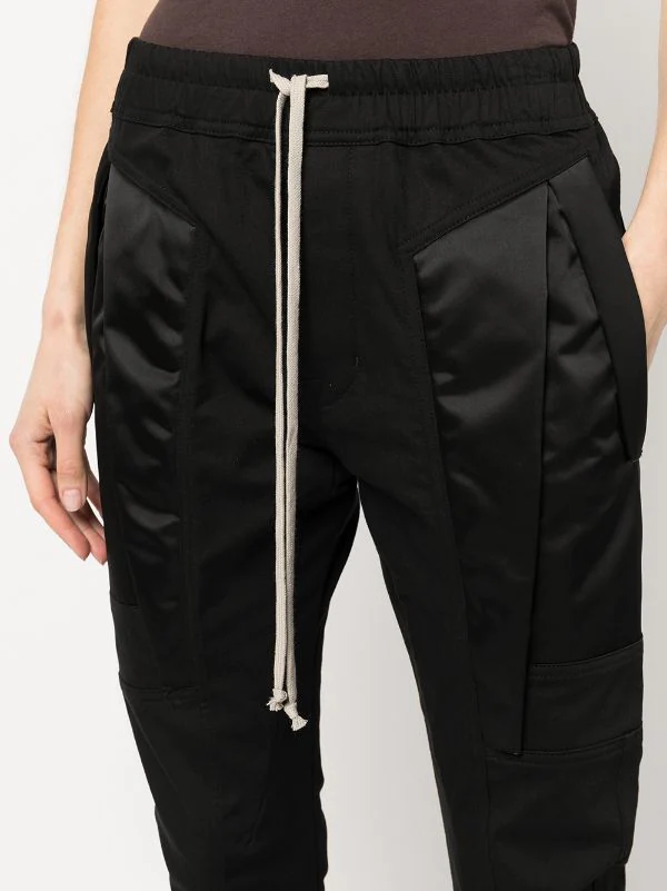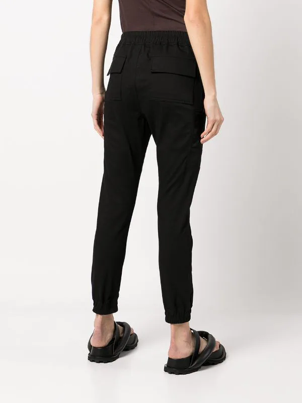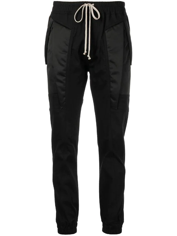 Lien de resserrage à la taille, poches arrière à rabat, coupe fuselée, chevilles élastiques. Couleur : noir. Matière : coton.