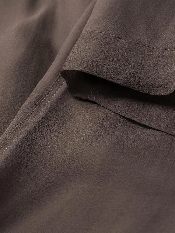 Marron, soie, lien de resserrage à la taille, entrejambe sarouel, poches latérales fendues, longueur crop.