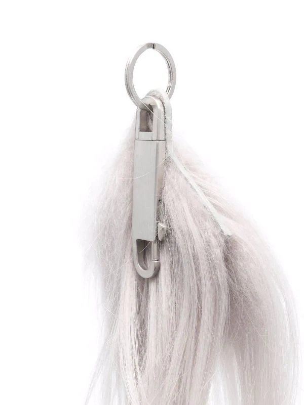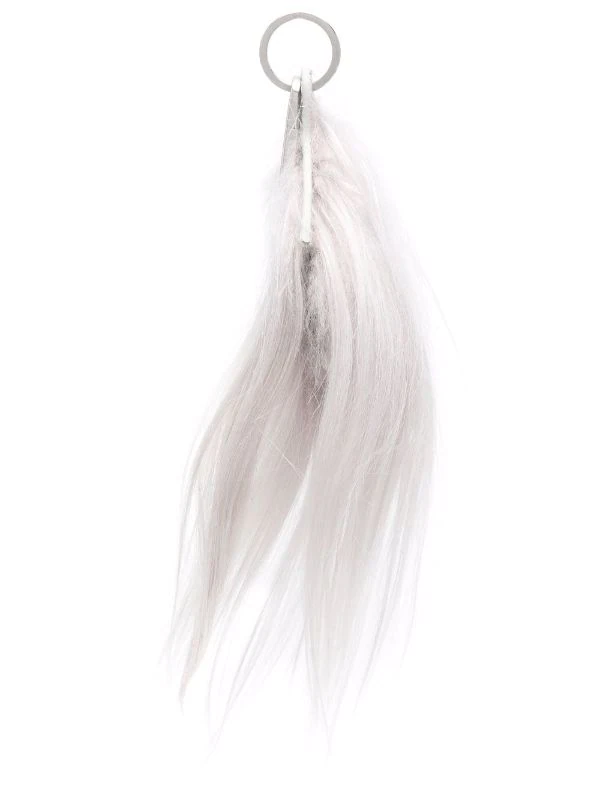 Finitions en fourrure, finitions en métal argenté, fermoir anneau. Couleur : gris. Matière : fourrure de chèvre.