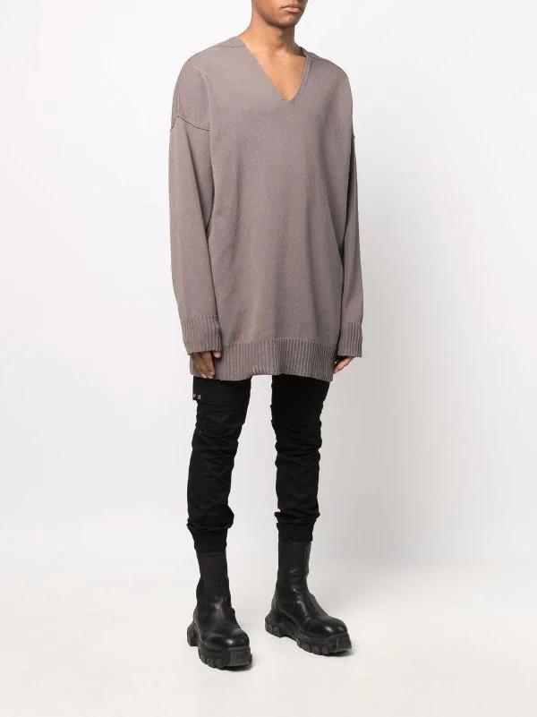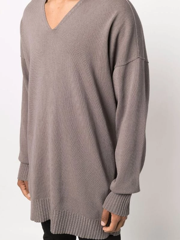 Design en maille, finitions nervurées, col v, épaules tombantes, manches longues, ourlet droit.