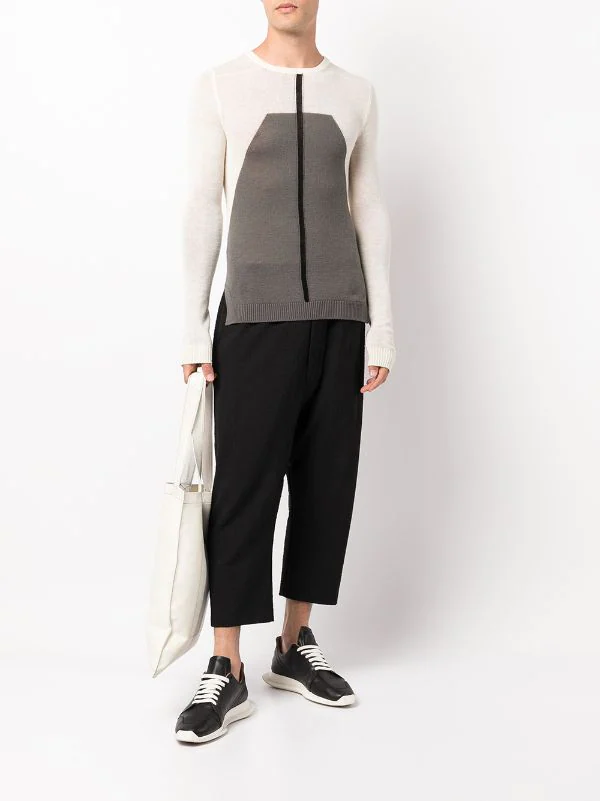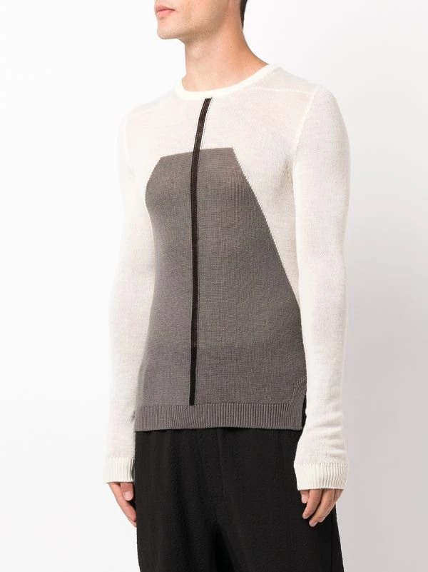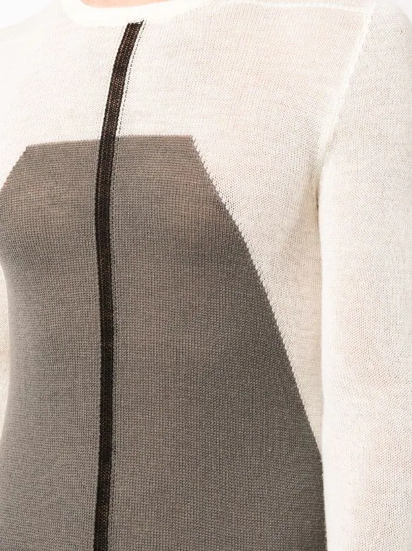 Design en maille, design à empiècements colour block, détails rayés, encolure ras du cou, manches longues, ourlet nervuré, poignets nervurés. Matière : laine.
