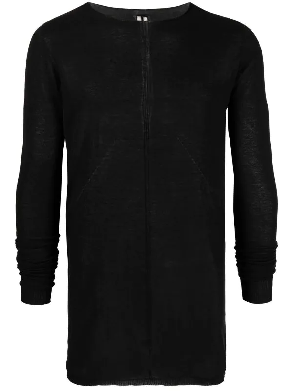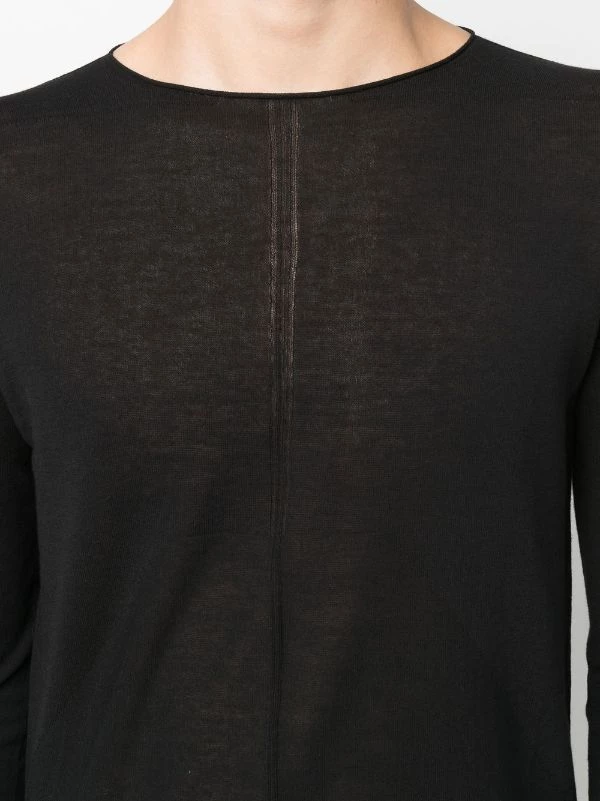 Noir, coton, design en maille, finitions nervurées, empiècements semi-transparents, coutures apparentes, encolure ronde, manches longues, ourlet droit.