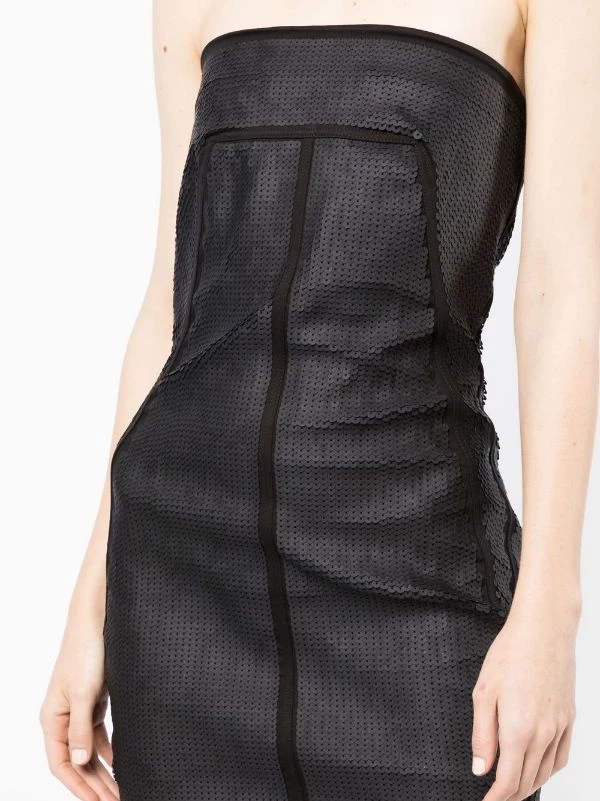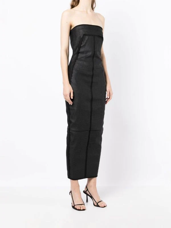 Design à empiècements, fente à l’arrière, fermeture zippée à l’arrière, sans bretelles, coupe mi-longue.