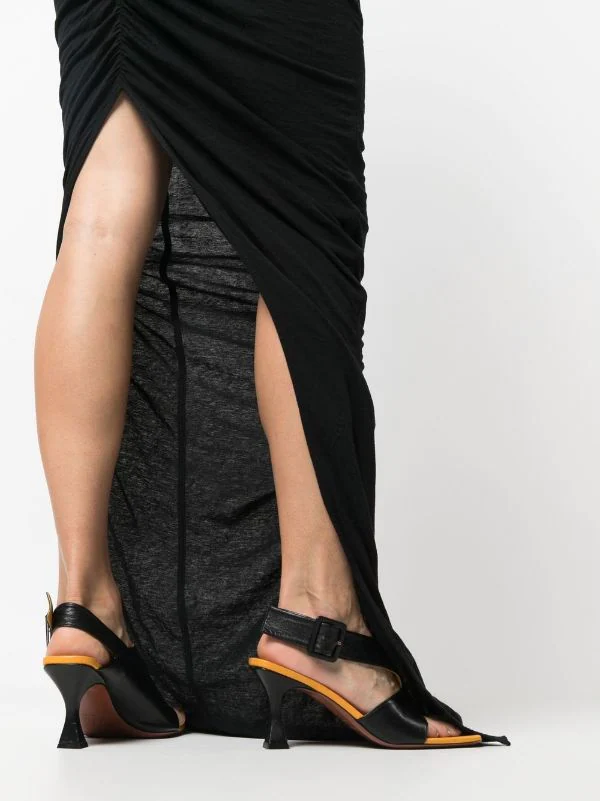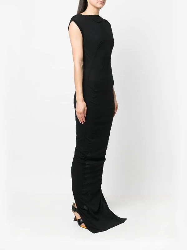 Encolure large, manches courtes, taille ajustée, fente à l’arrière.