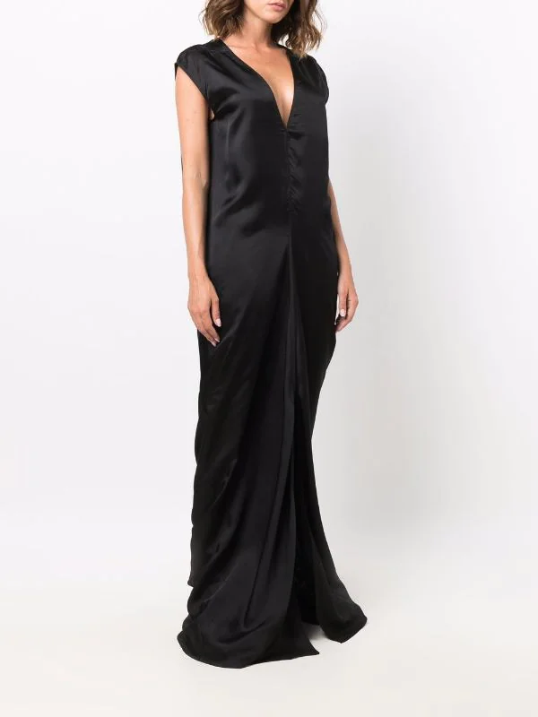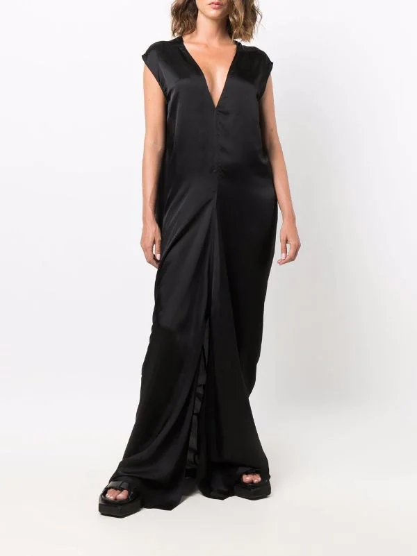 Col v, design sans manches, fini satiné. Couleur : noir.