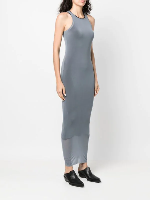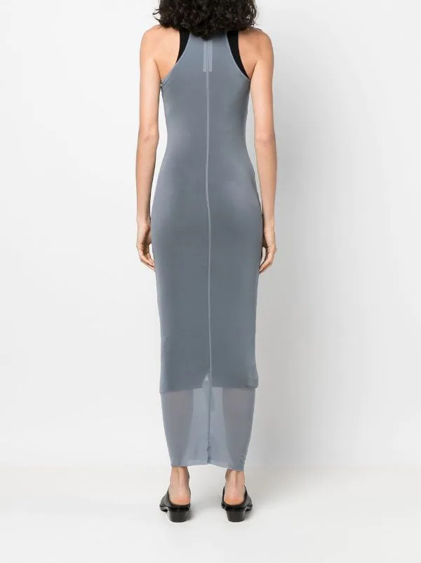 Coupe slim, encolure ronde, design sans manches, coupe mi-longue. Couleur : bleu.