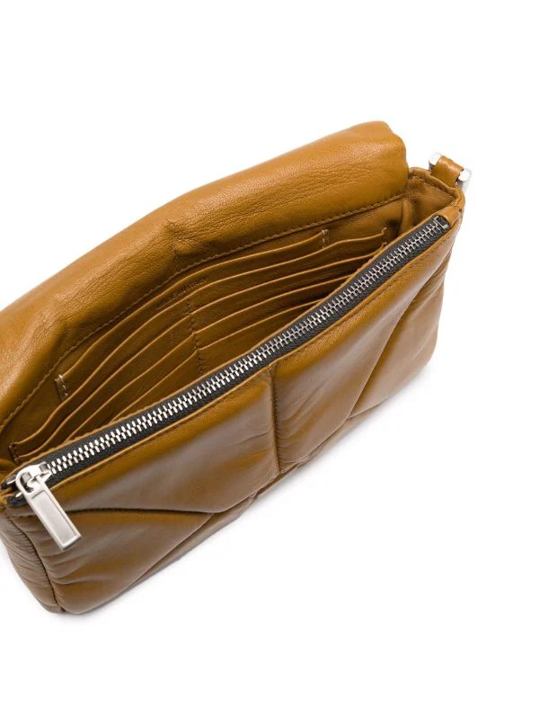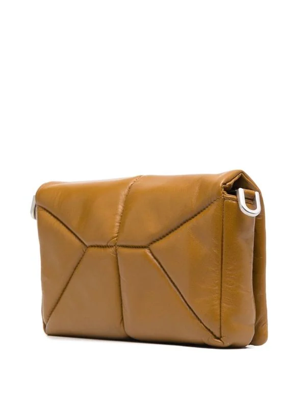 Bretelles fines, coutures ton sur ton, ornements argentés, design matelassé, rabat sur le devant, compartiment zippé, compartiment principal, compartiments intérieurs pour carte. Matière : cuir.
