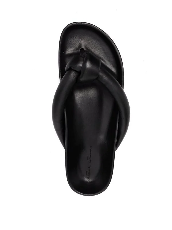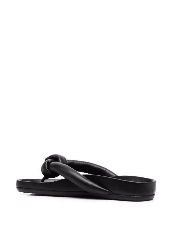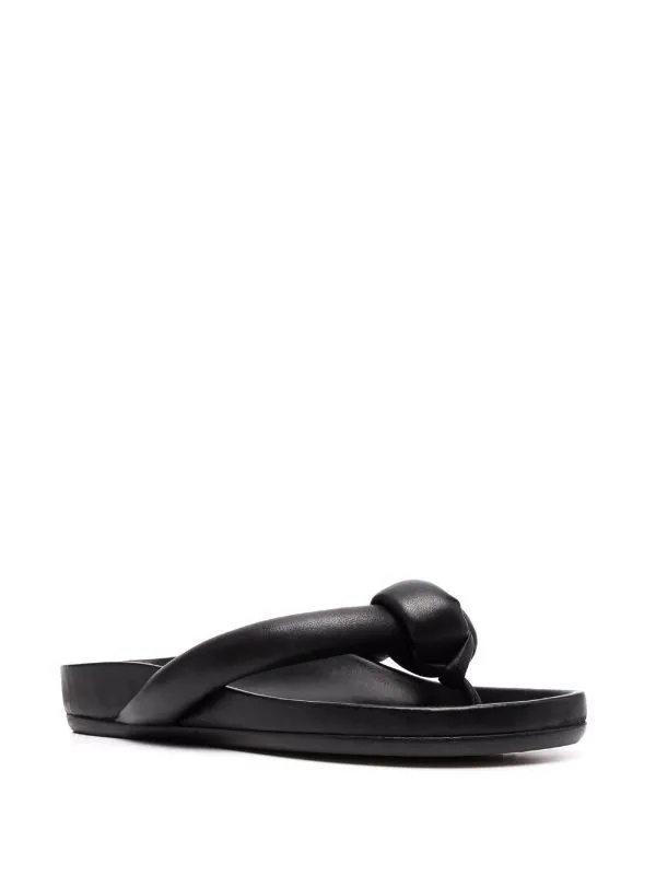 Empiècements matelassés, détail de nœud, bout ouvert, semelle intérieure à logo, semelle en caoutchouc. Couleur : noir. Matière : cuir.
