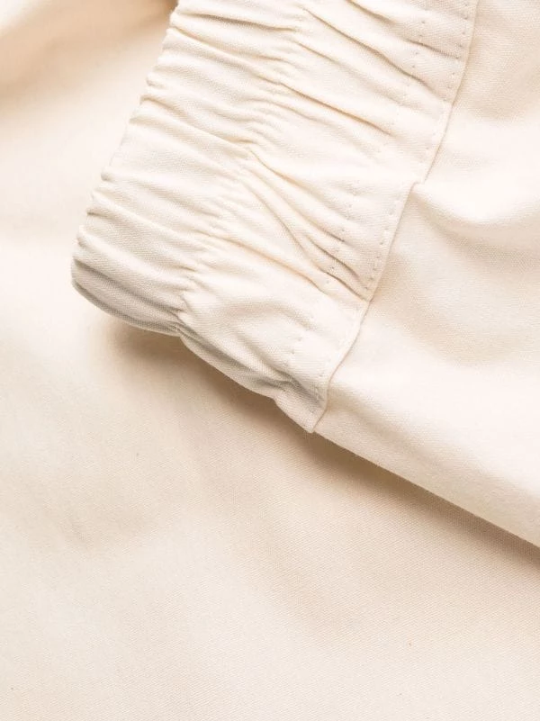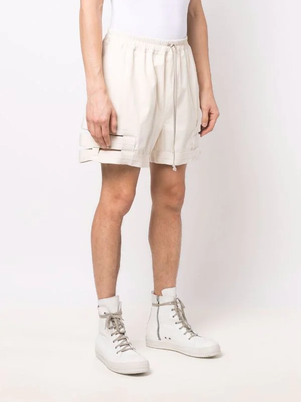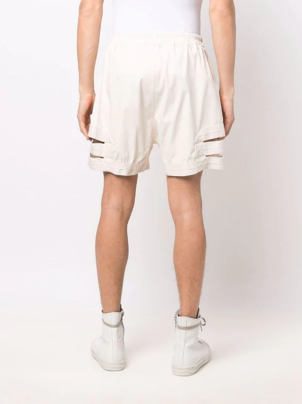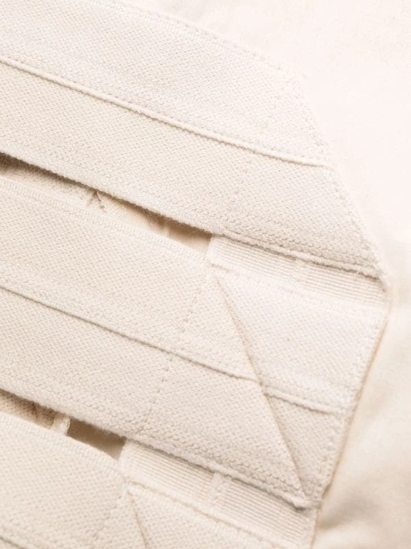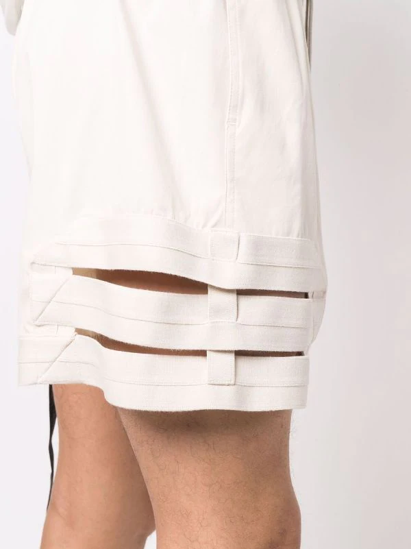 Détails de découpes, lien de resserrage à la taille, hauteur genou, deux poches latérales fendues.