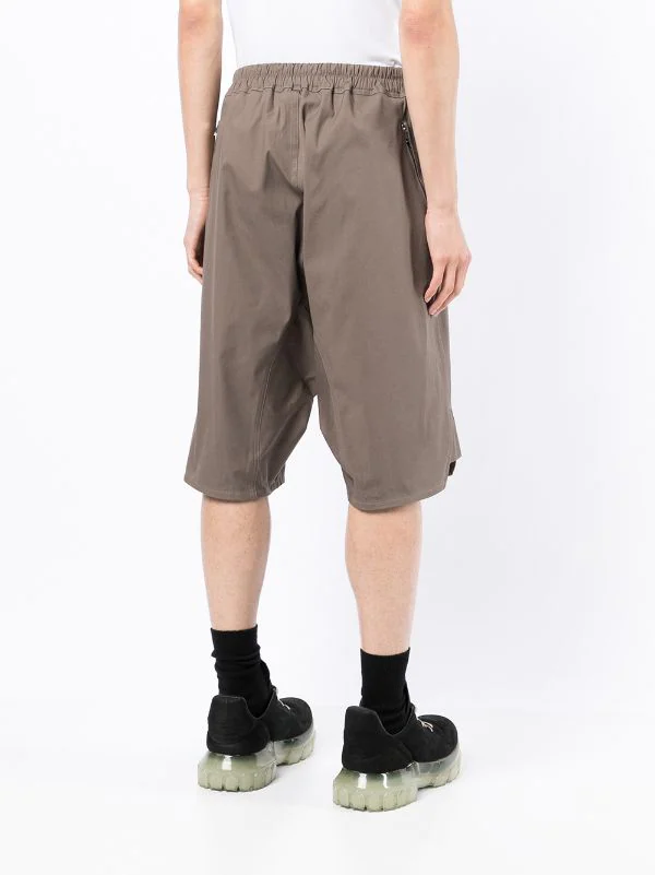 Fentes latérales, taille élastique à lien de resserrage, poches latérales fendues, deux poches arrière zippées. Matière : coton.