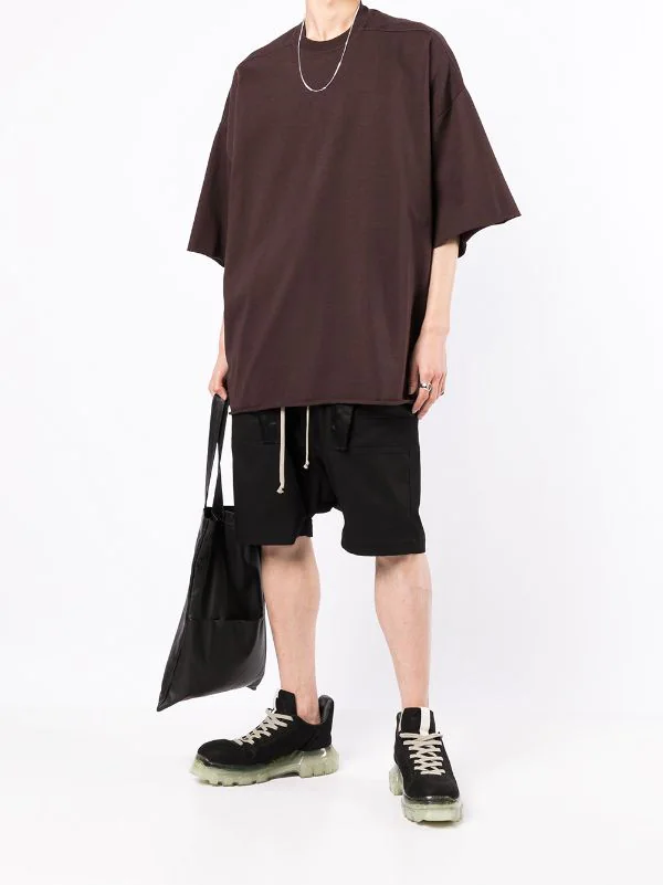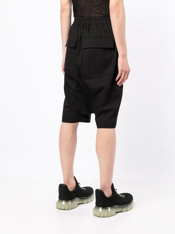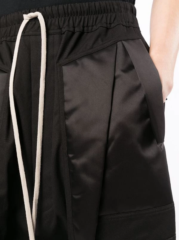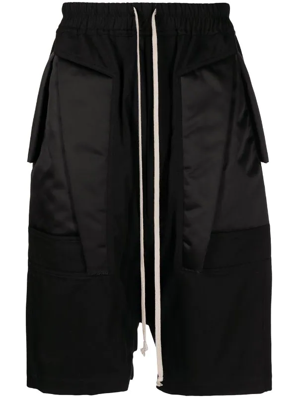 Modèle bicolore, taille élastique à lien de resserrage, deux poches latérales fendues, poches arrière passepoilées, longueur au dessous du genou. Couleur : noir. Matière : coton.