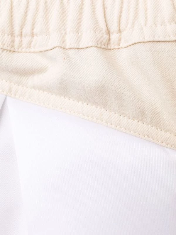 Taille haute, entrejambe sarouel, deux poches latérales fendues, longueur maxi. Matière : coton mélangé.