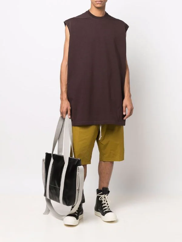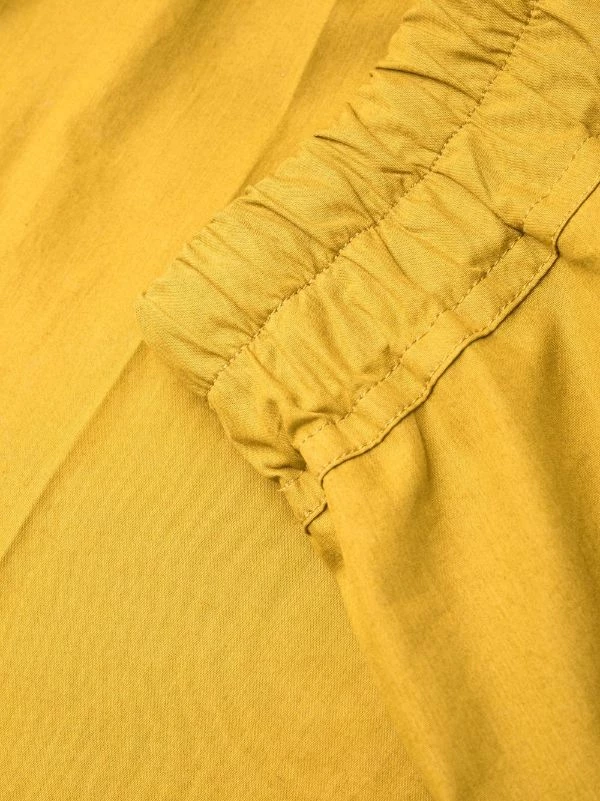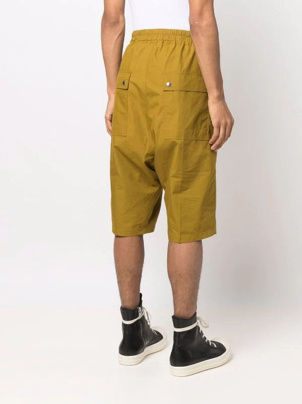 Taille élastique à lien de resserrage, entrejambe sarouel, poches latérales fendues, poches arrière à rabat. Matière : coton.