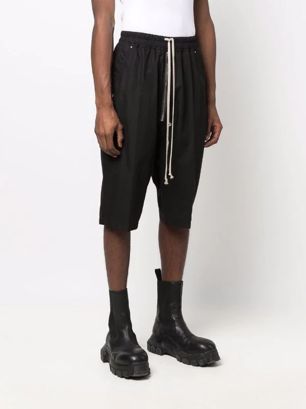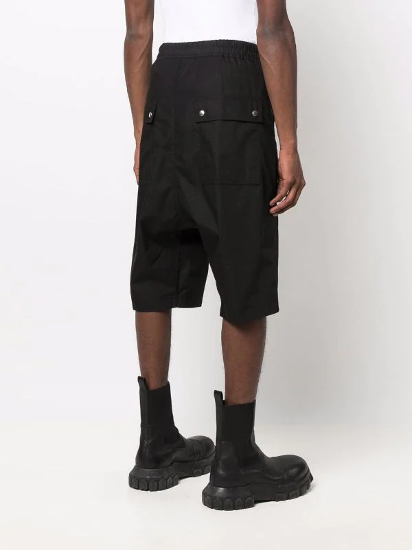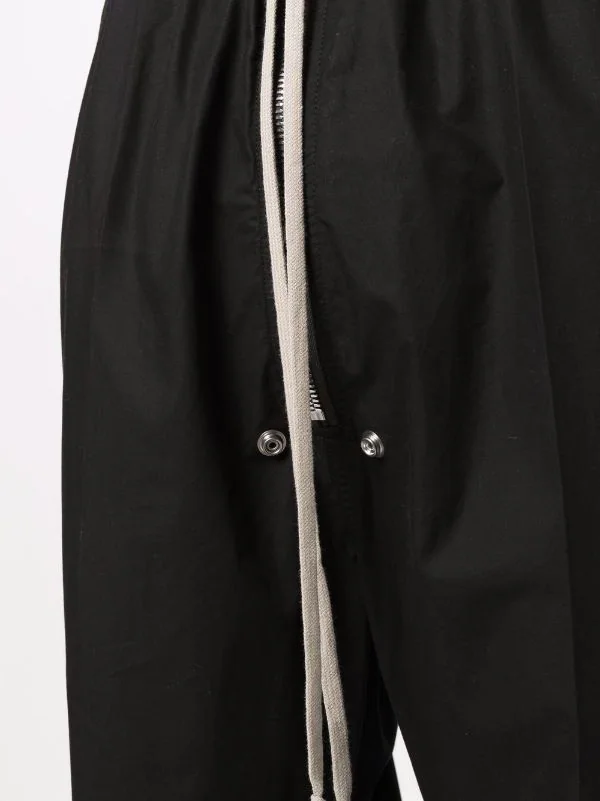 Taille élastique à lien de resserrage, entrejambe sarouel, poches latérales fendues, poches arrière à rabat. Couleur : noir. Matière : coton.