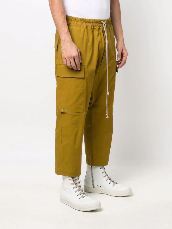 Taille élastique à lien de resserrage, poche latérale cargo, coupe ample, poches arrière à rabat.