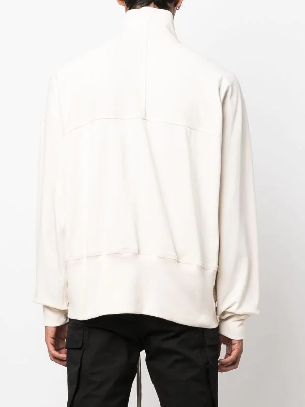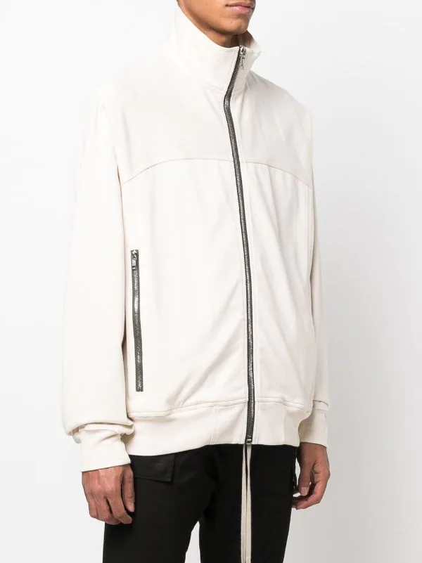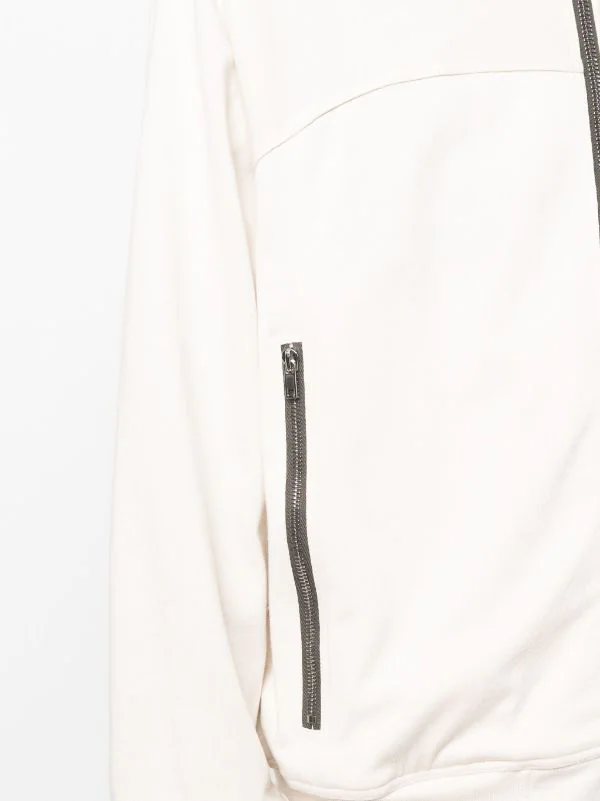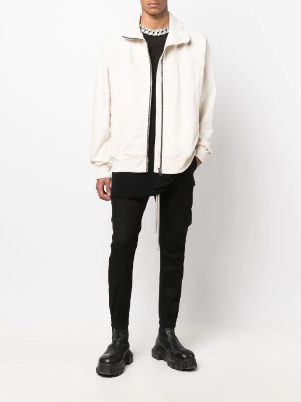 Col montant, fermeture zippée devant, manches longues, deux poches latérales zippées. Matière : coton.
