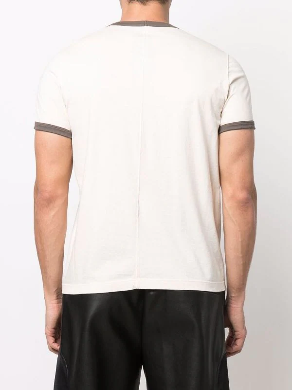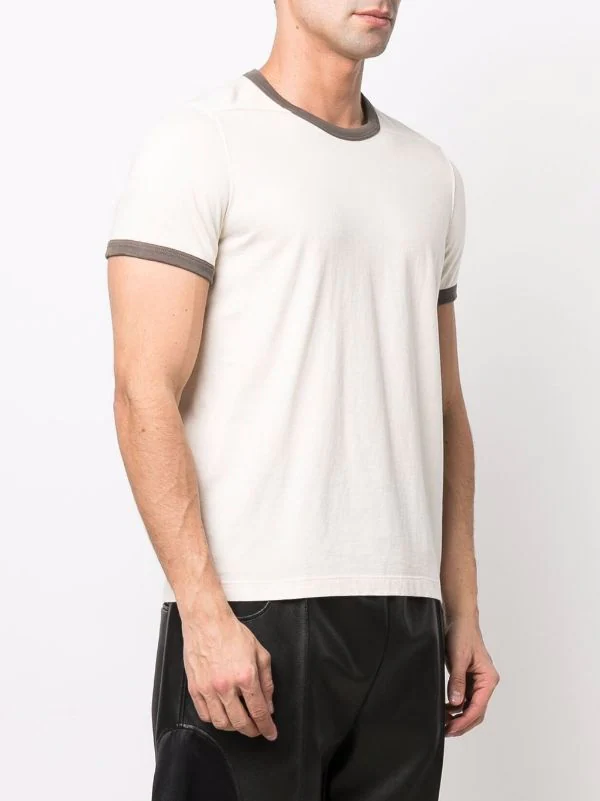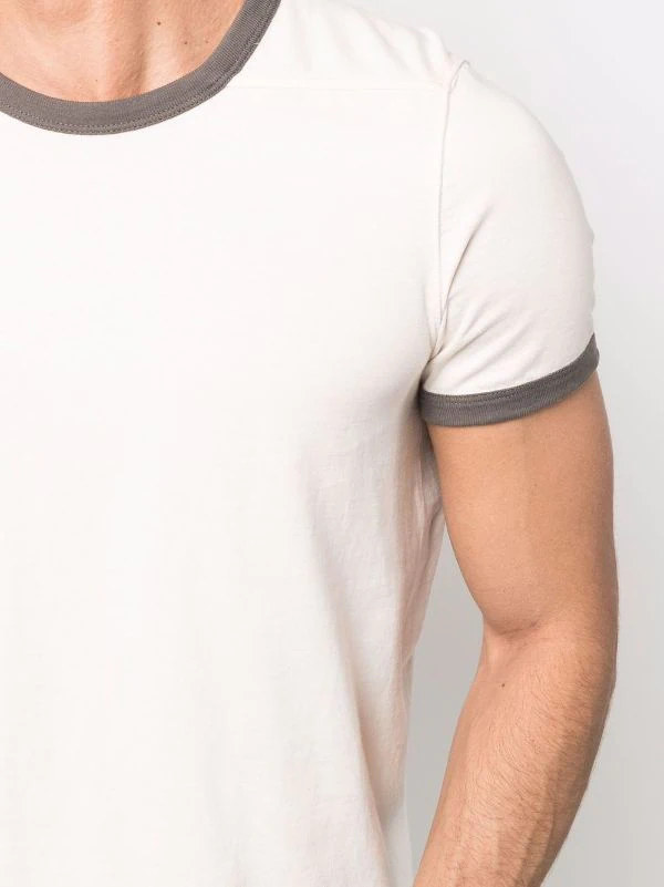 Bordure contrastante, encolure ronde, manches courtes, ourlet droit. Couleur : blanc. Matière : coton.