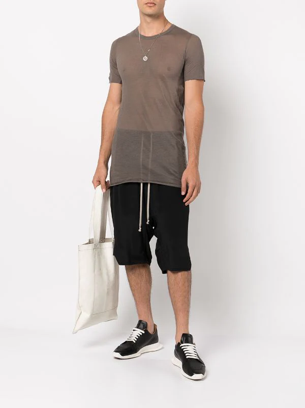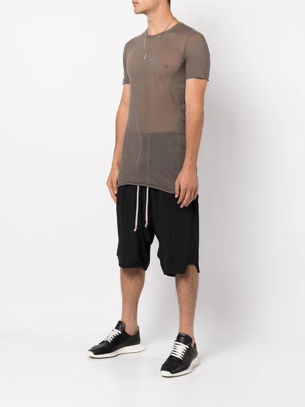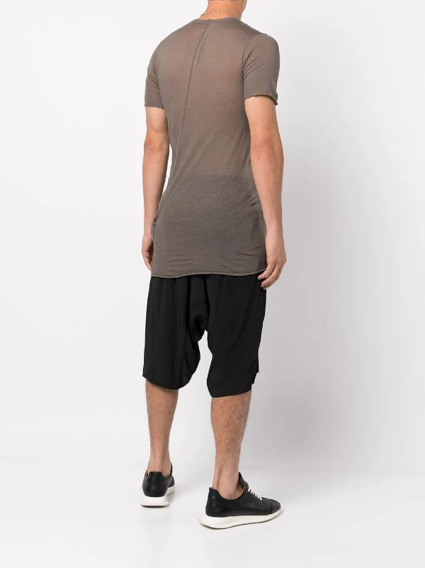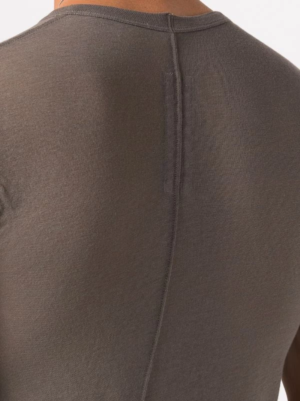 Tricot point jersey, encolure ronde, manches courtes, ourlet droit, détails de coutures apparentes, patch logo intérieur. Couleur : gris. Matière : coton.