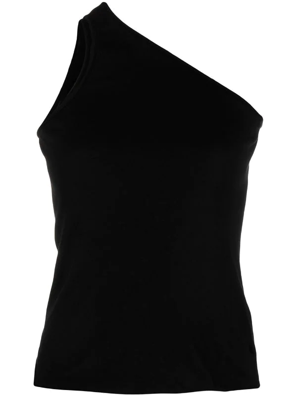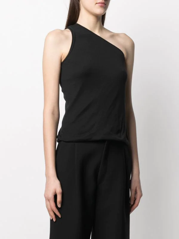 Design asymétrique à une épaule, design asymétrique, design sans manches. Couleur : noir. Matière : coton.