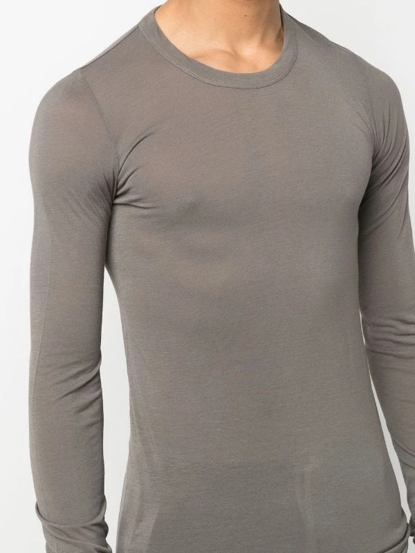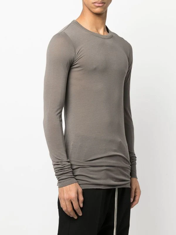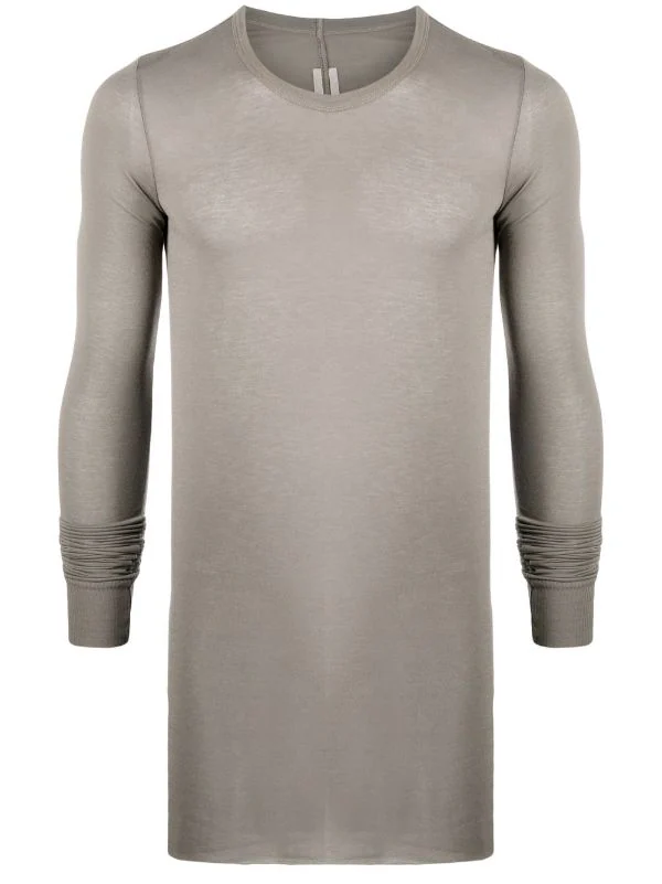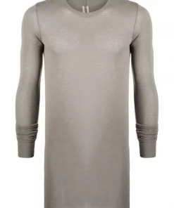 Encolure ronde, manches longues, ourlet droit, coupe longue. Couleur : gris.
