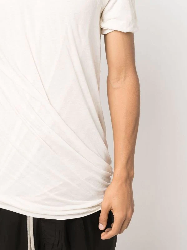 Détails de fronces, design ton sur ton, encolure ras du cou, manches courtes, ourlet droit. Couleur : blanc. Matière : coton.