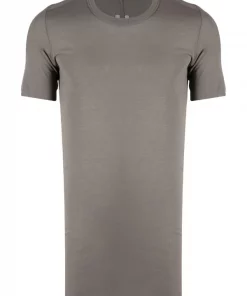 Encolure ronde, manches courtes, longueur maxi, ourlet droit. Couleur : gris.