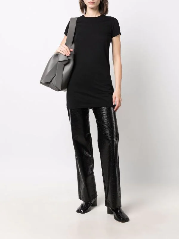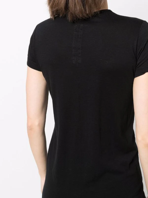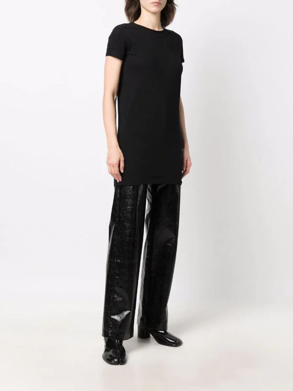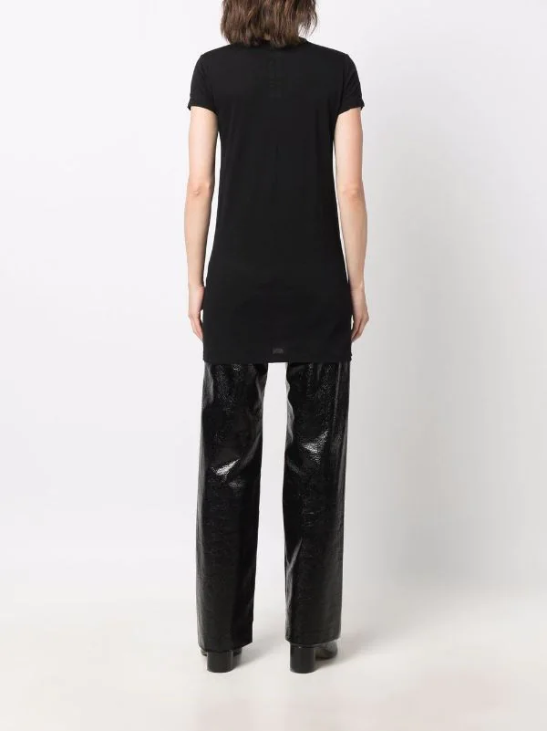 Encolure ras du cou, manches courtes, ourlet droit, coupe longue. Couleur : noir.