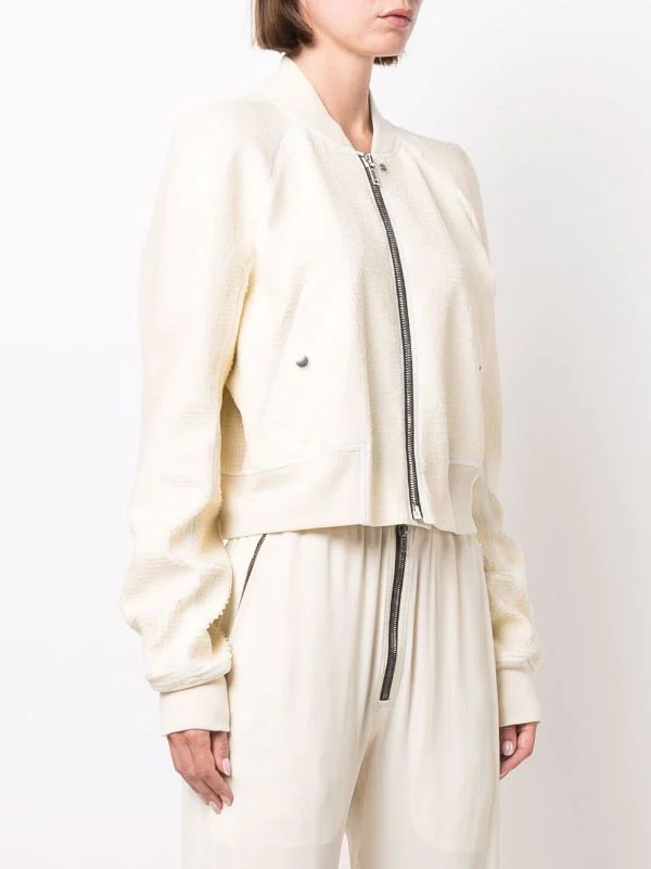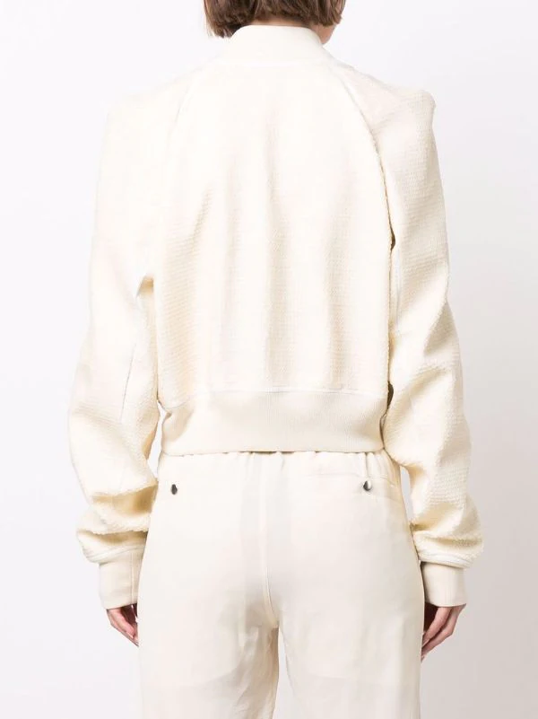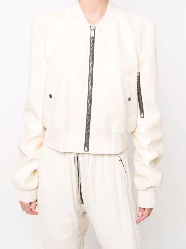 Fermeture zippée devant, deux poches latérales zippées, manches longues, poignets élastiqués, ourlet élastiqué. Matière : laine vierge.