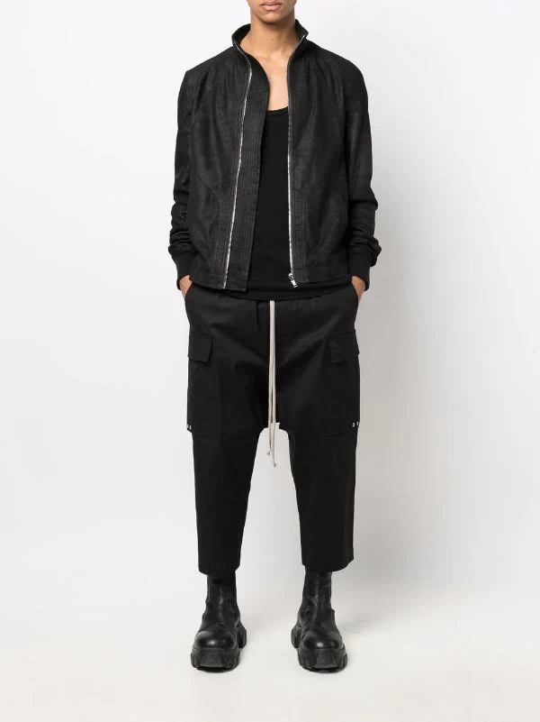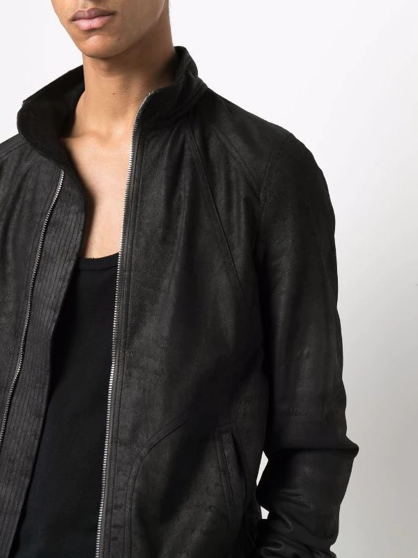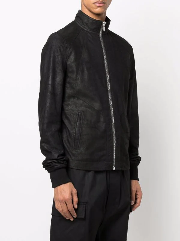 Daim, col montant, fermeture zippée à double sens sur le devant, poignets élastiqués, ourlet élastiqué. Couleur : noir.