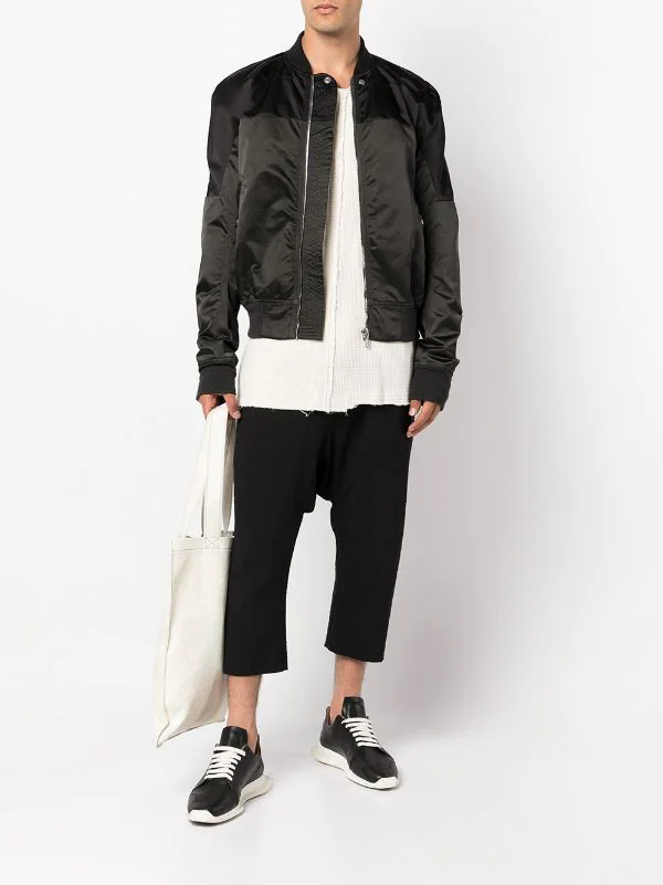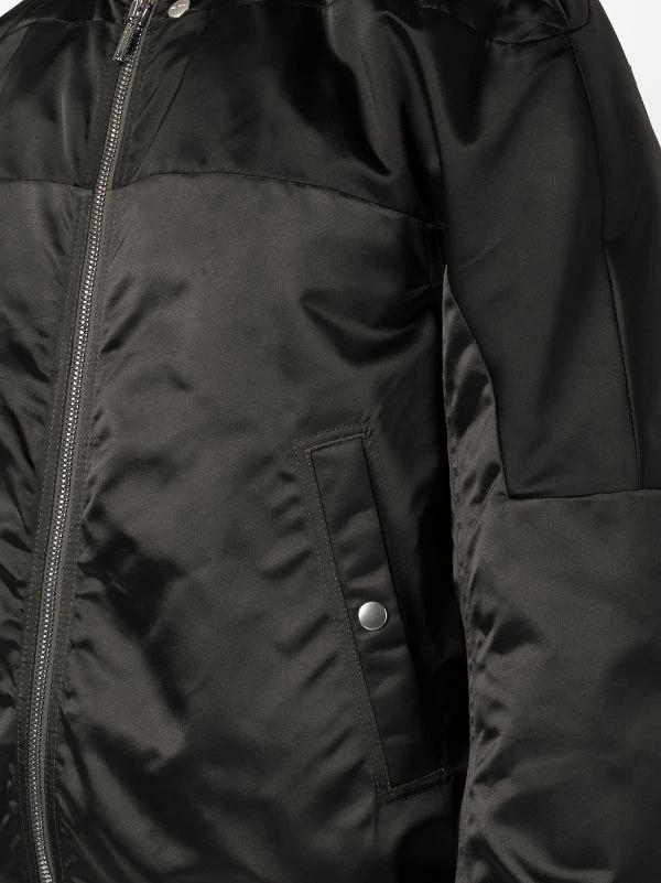 Noir, design ton sur ton, bordures nervurées, deux poches latérales à bouton pression, fermeture zippée devant, col montant, manches longues, ourlet droit.