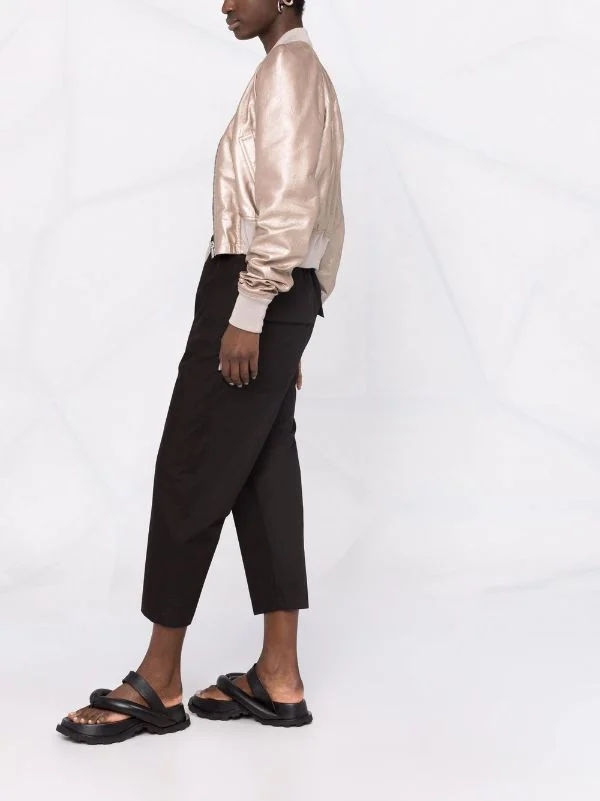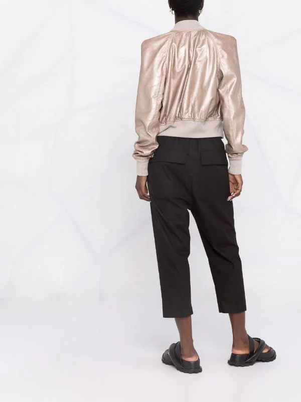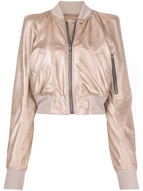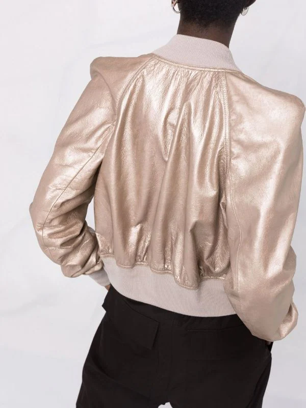 Effet métallisé, ourlet élastiqué, épaulettes, fermeture zippée devant, poche zippée sur la manche.