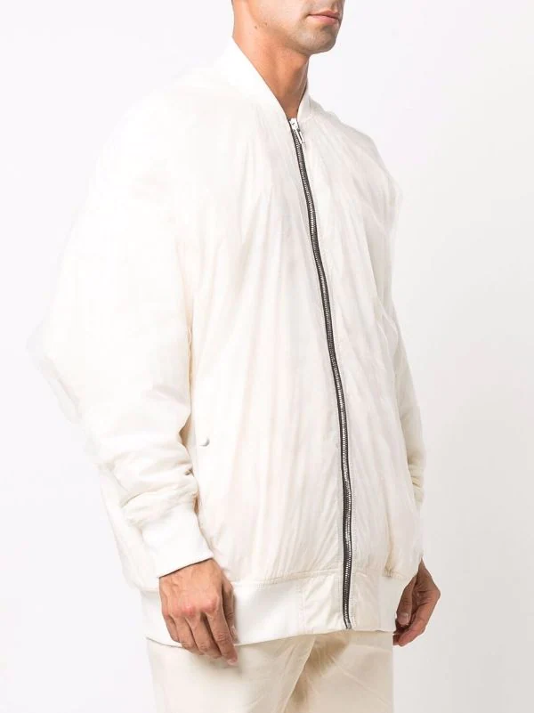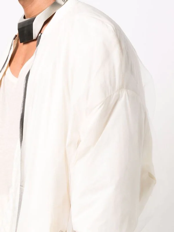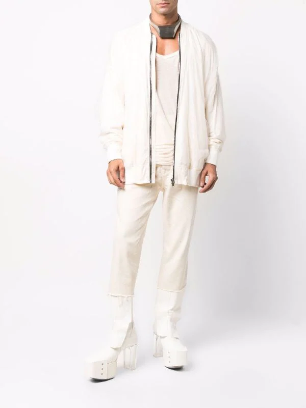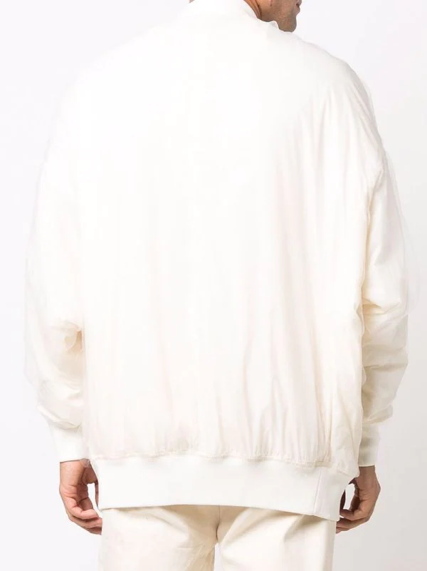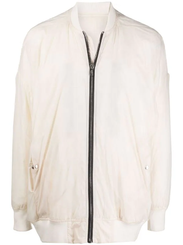 Fermeture zippée devant, manches longues, ourlet élastiqué, deux poches passepoilées latérales.