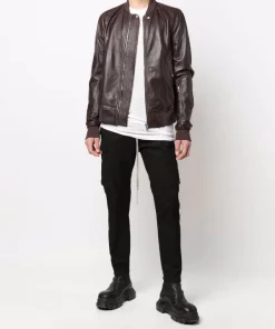 ( Nouvelle Collection ) Rick Owens Veste En Cuir à Fermeture Zippée Homme