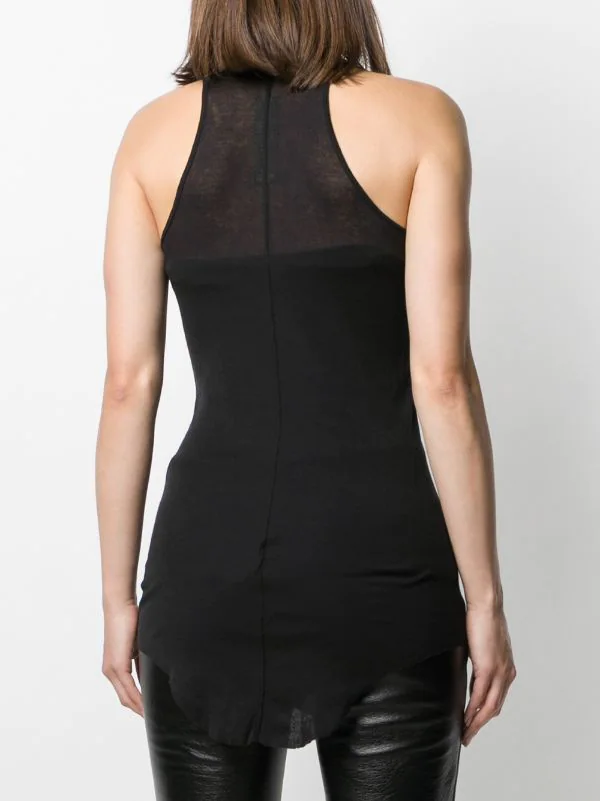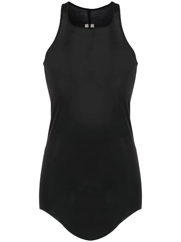 Débardeur ajusté en coton Rick Owens avec encolure ronde, bride portée épaule et coupe slim. Couleur : noir.
