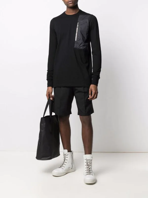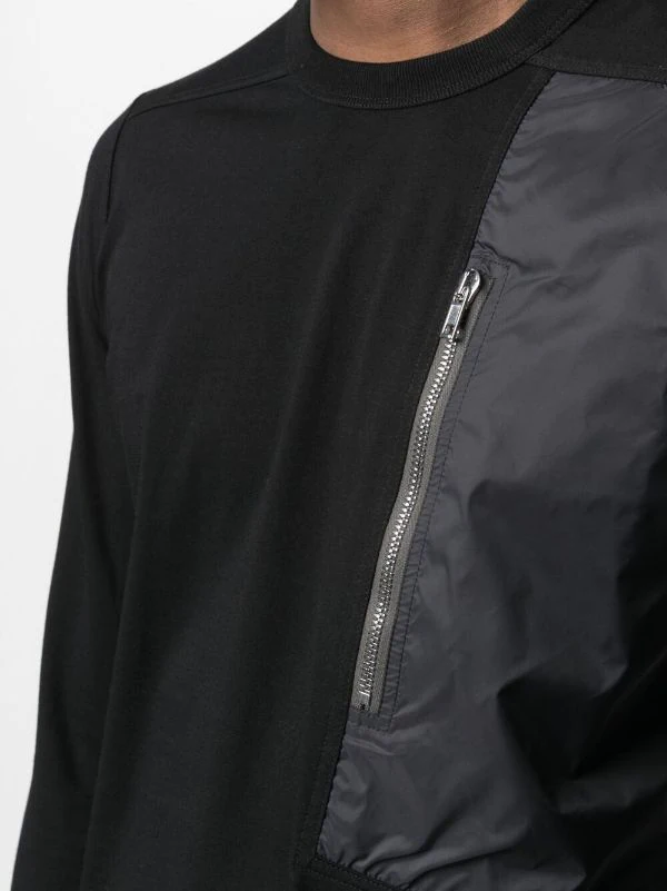 Encolure ras du cou, empiècements contrastants, manches longues, poche poitrine zippée, ourlet droit. Couleur : noir. Matière : coton.