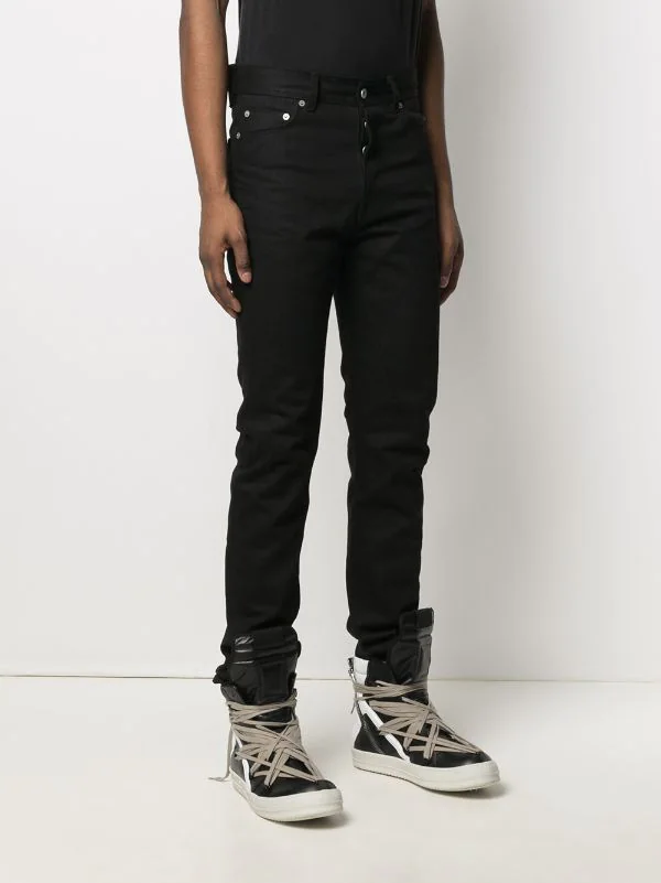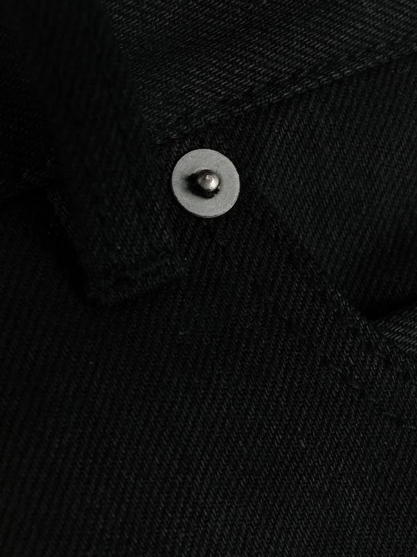 Coupe droite, fermeture boutonnée, passants de ceinture, 5 poches classiques. Couleur : Noir. Matière : coton.