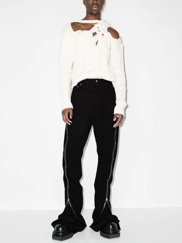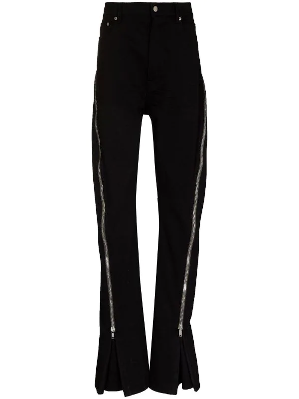 Finitions en métal argenté, boutonnière sur le devant, poches latérales fendues, fermeture zippée sur le côté, coupe évasée. Couleur : noir. Matière : coton.