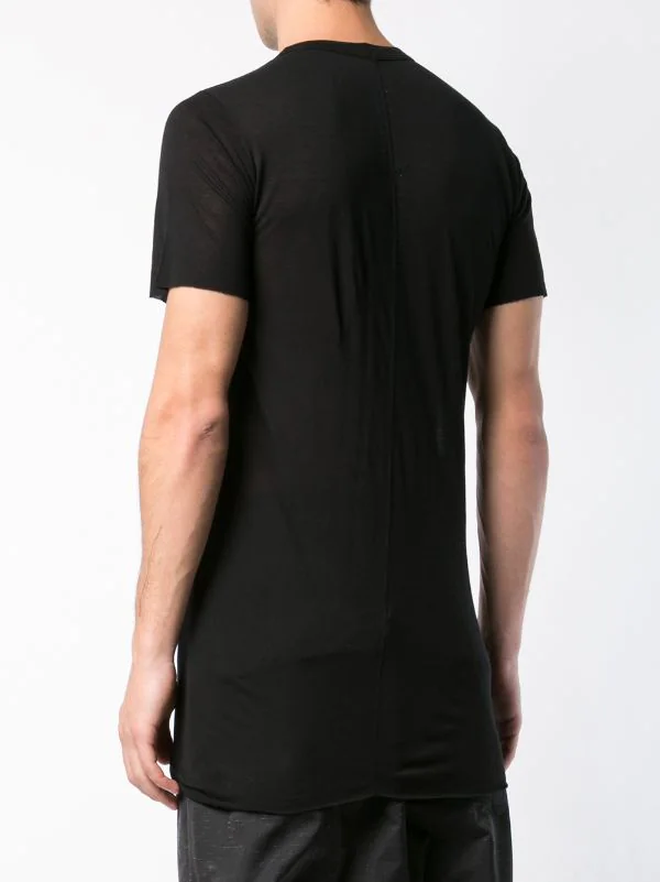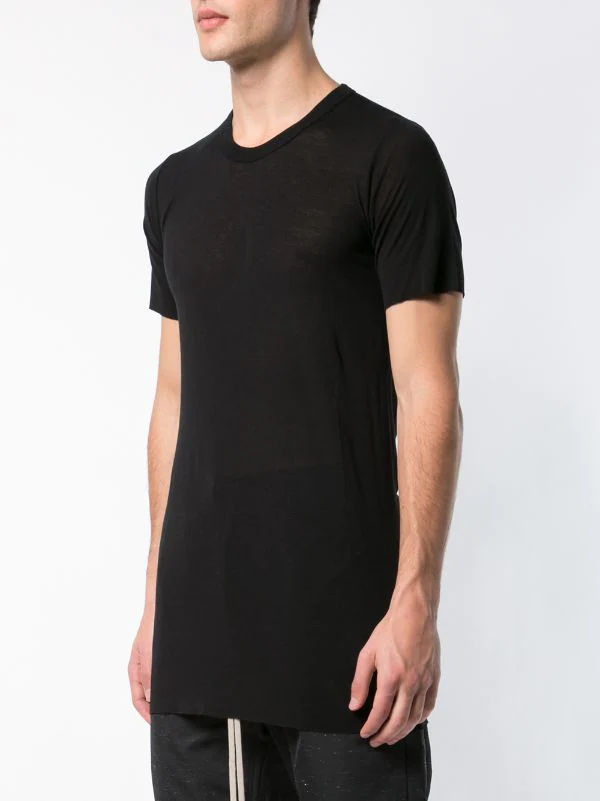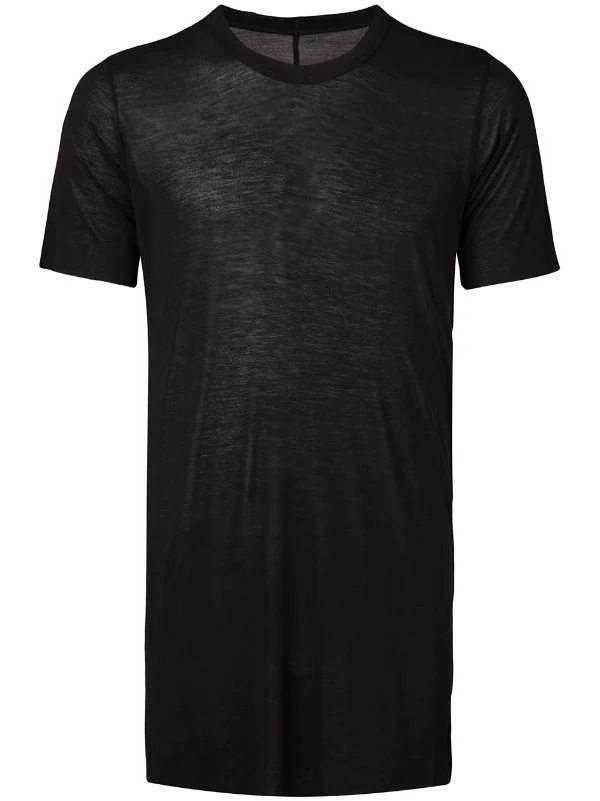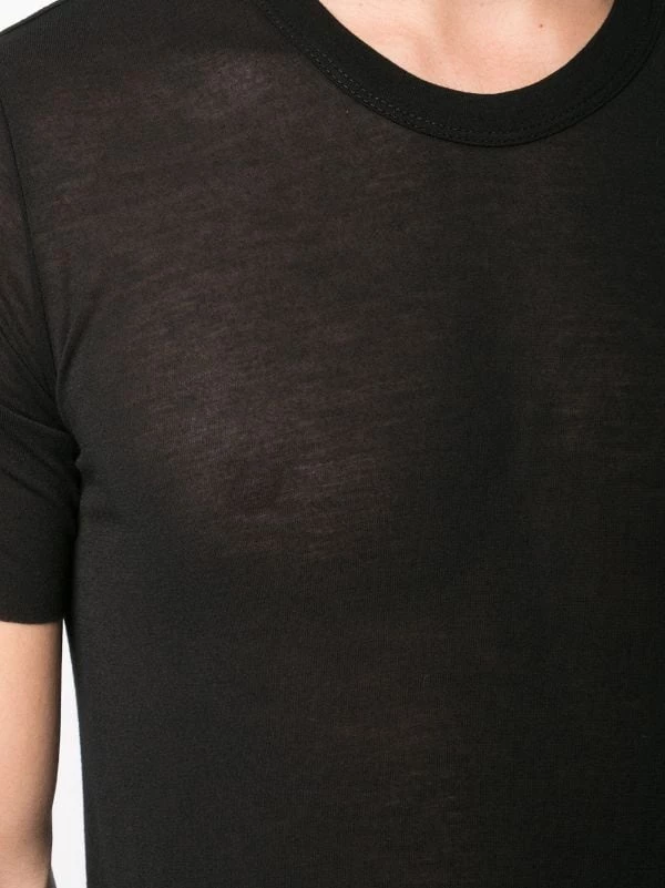 T-shirt à effet de transparence en soie Rick Owens avec encolure ras du cou, manches courtes, effet de transparence et coupe stretch. Couleur : noir.