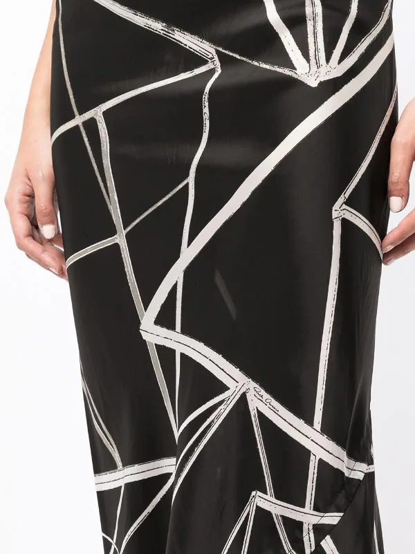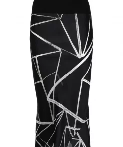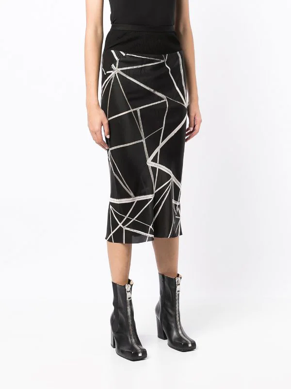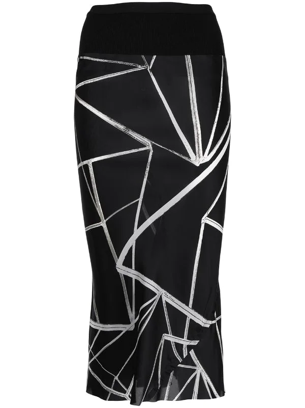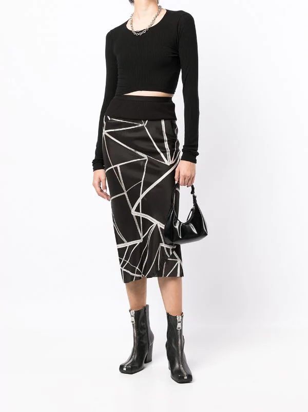 Imprimé abstrait, taille haute, coupe mi-longue.