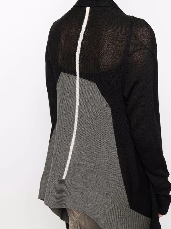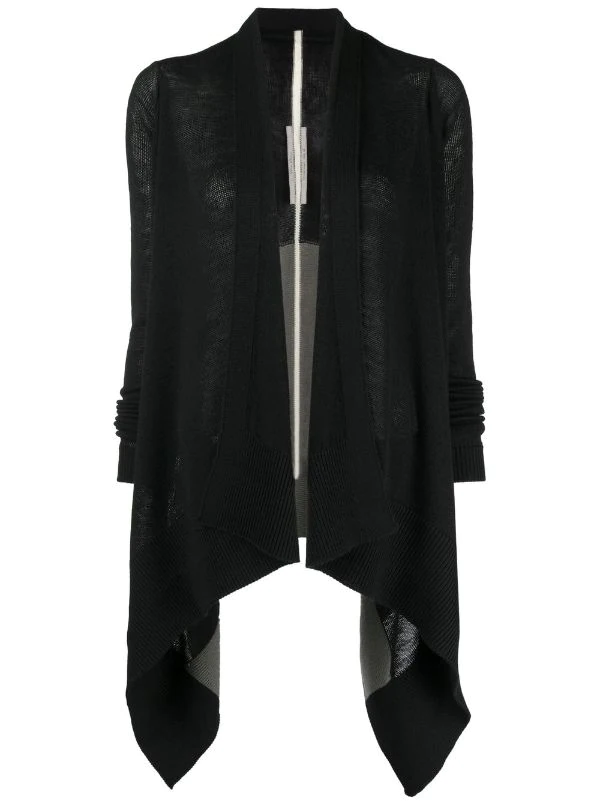 Modèle bicolore, détail nervuré, devant ouvert, manches longues. Matière : laine vierge.