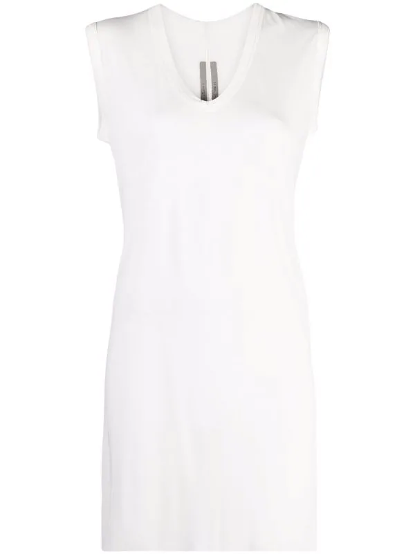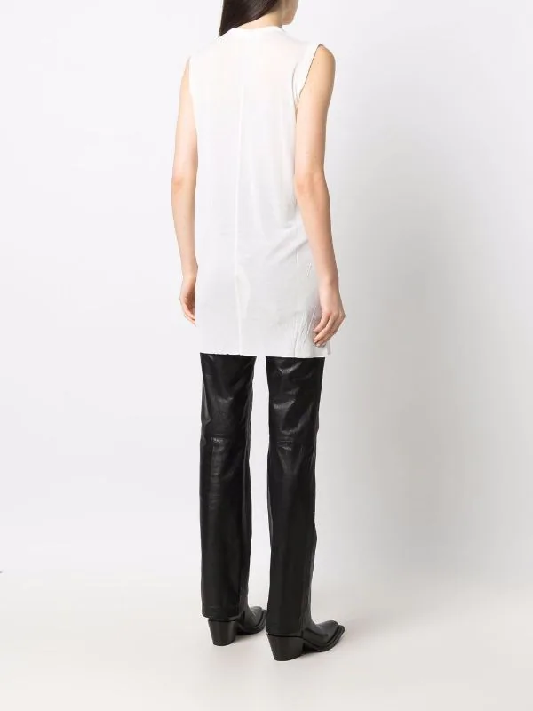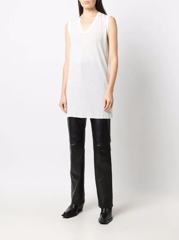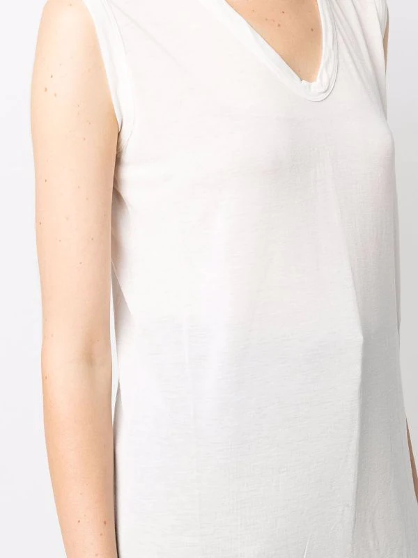 Col v, design sans manches, ourlet droit. Couleur : blanc.