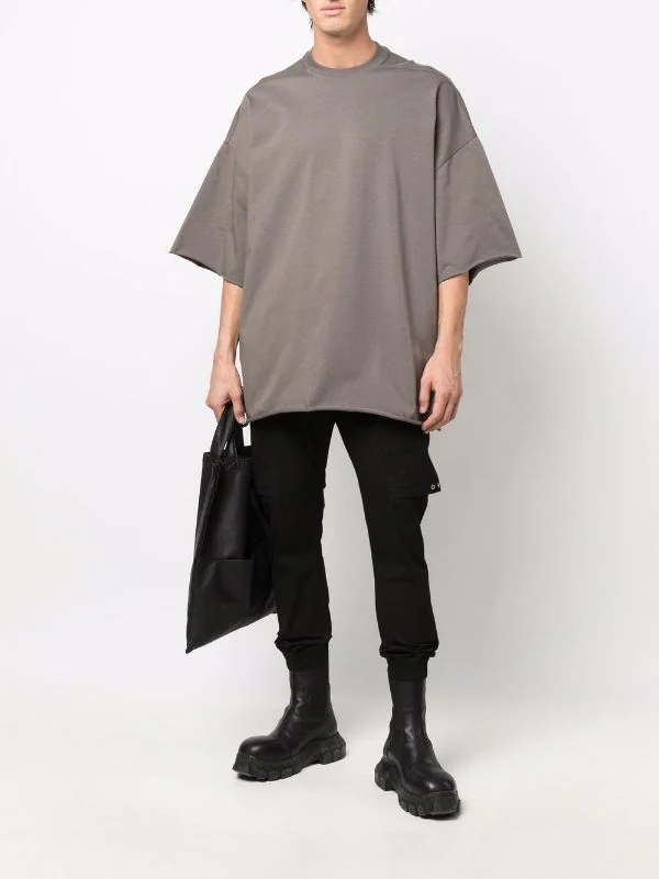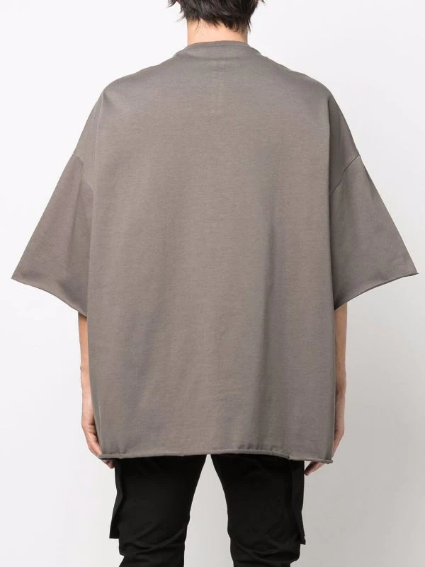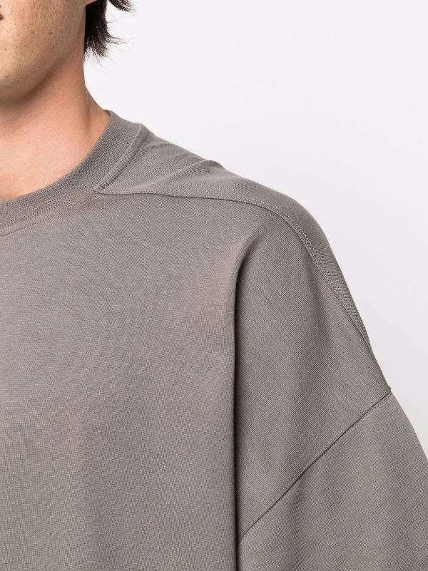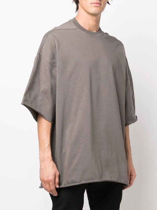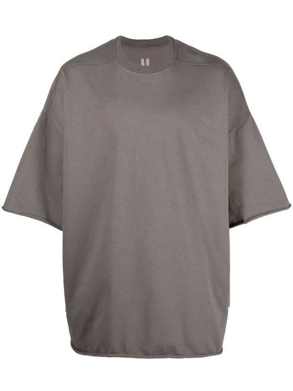 Encolure ronde, tricot point jersey, design ton sur ton, épaules tombantes, manches courtes, ourlet droit. Matière : coton.