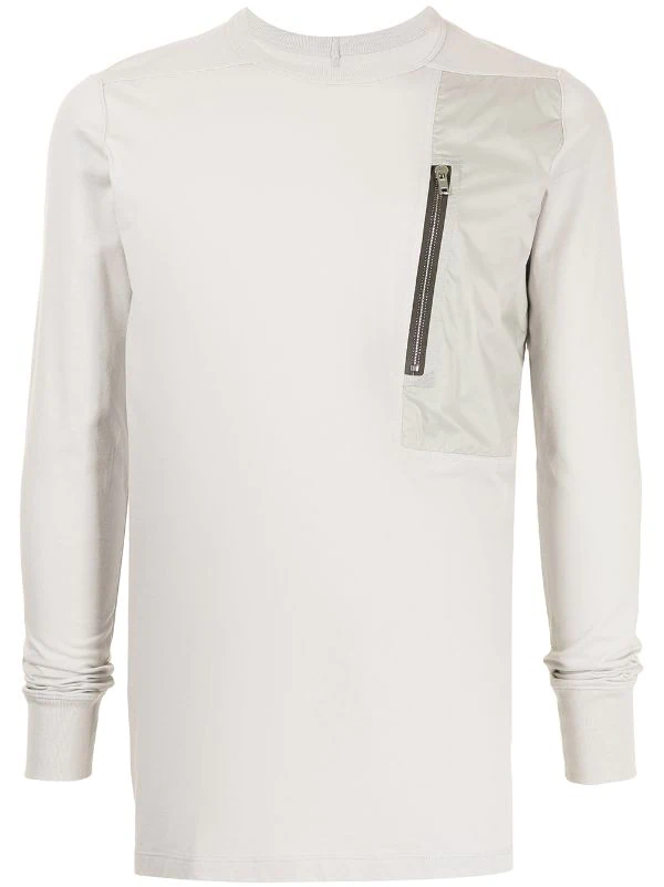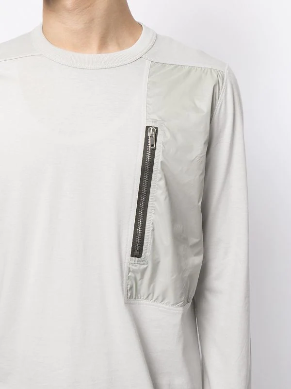 Empiècements contrastants, fermeture zippée décorative, poignets nervurés, encolure ronde, manches longues, ourlet droit. Matière : coton.